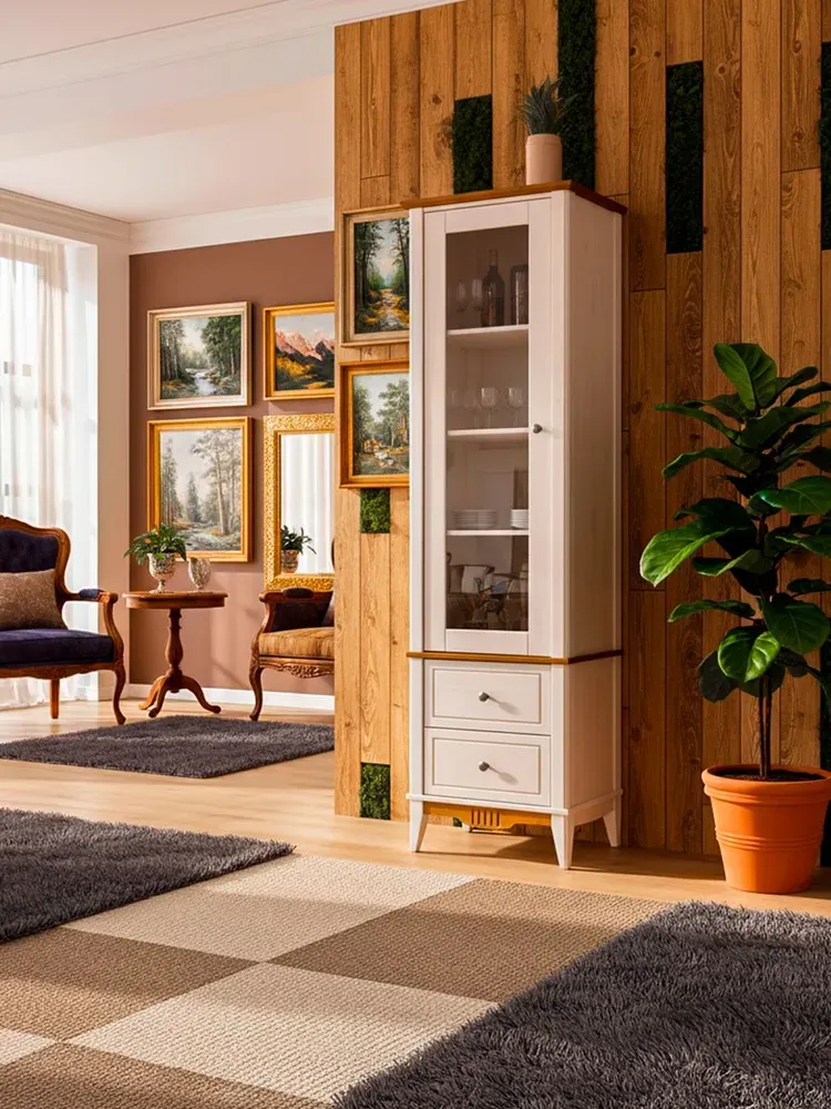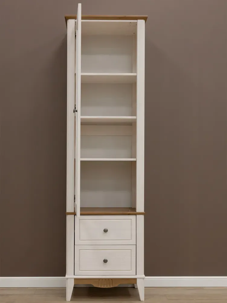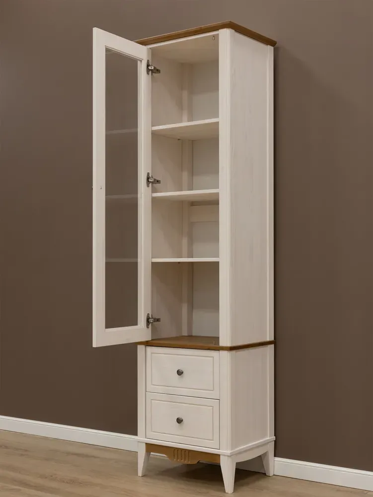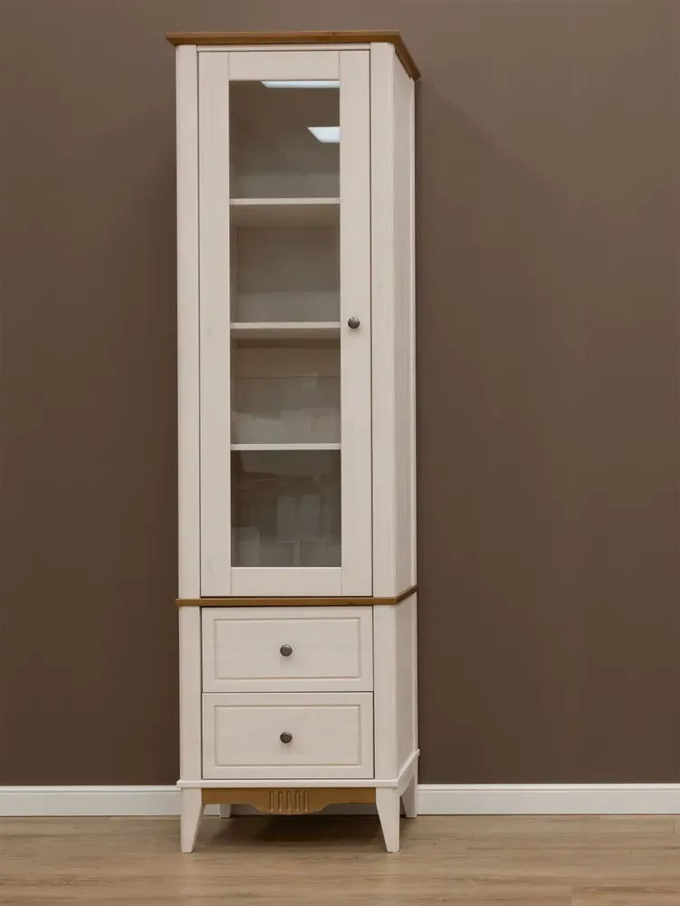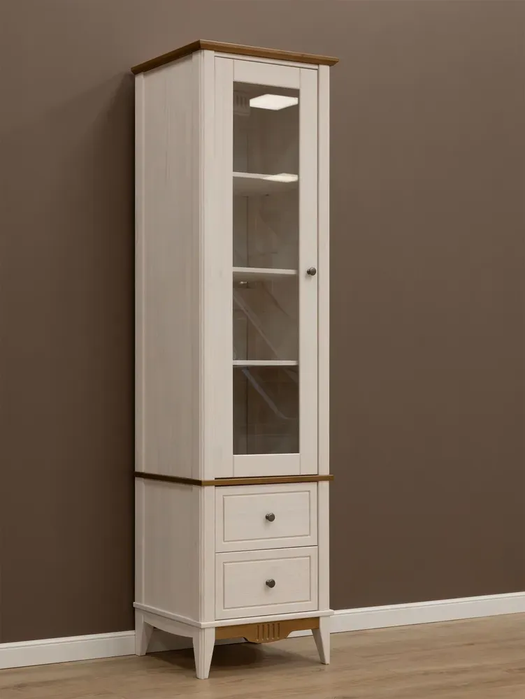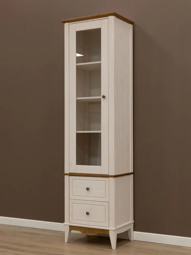 Одностворчатый остекленный шкаф «Пенни» с ящиками выполнен в популярном скандинавском стиле, с минимумом декора. Шкаф разработан и изготовлен совместными усилиями немецких дизайнеров, мебельной фабрики ММЦ (Минск) и компании «ДМС-маркет» (Санкт-Петербург). Шкаф предназначен для хранения посуды, но при желании его можно использовать как книжный или бельевой. Узкий шкаф «Пенни» будет хорошо смотреться и в гостиной, и в спальне, и в рабочем кабинете.