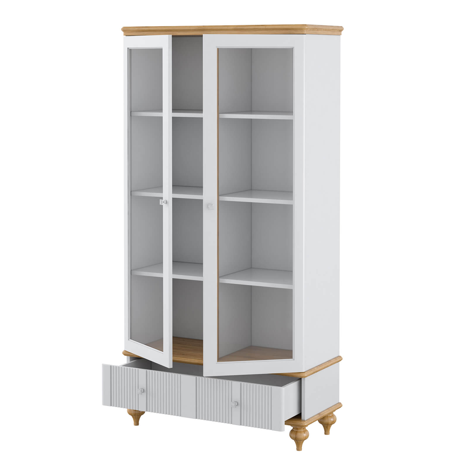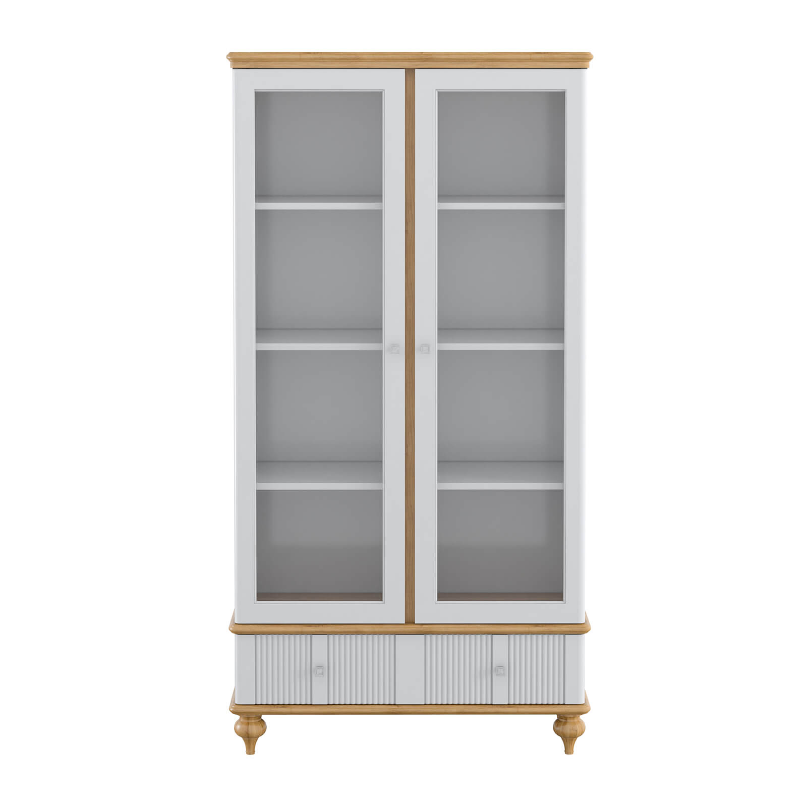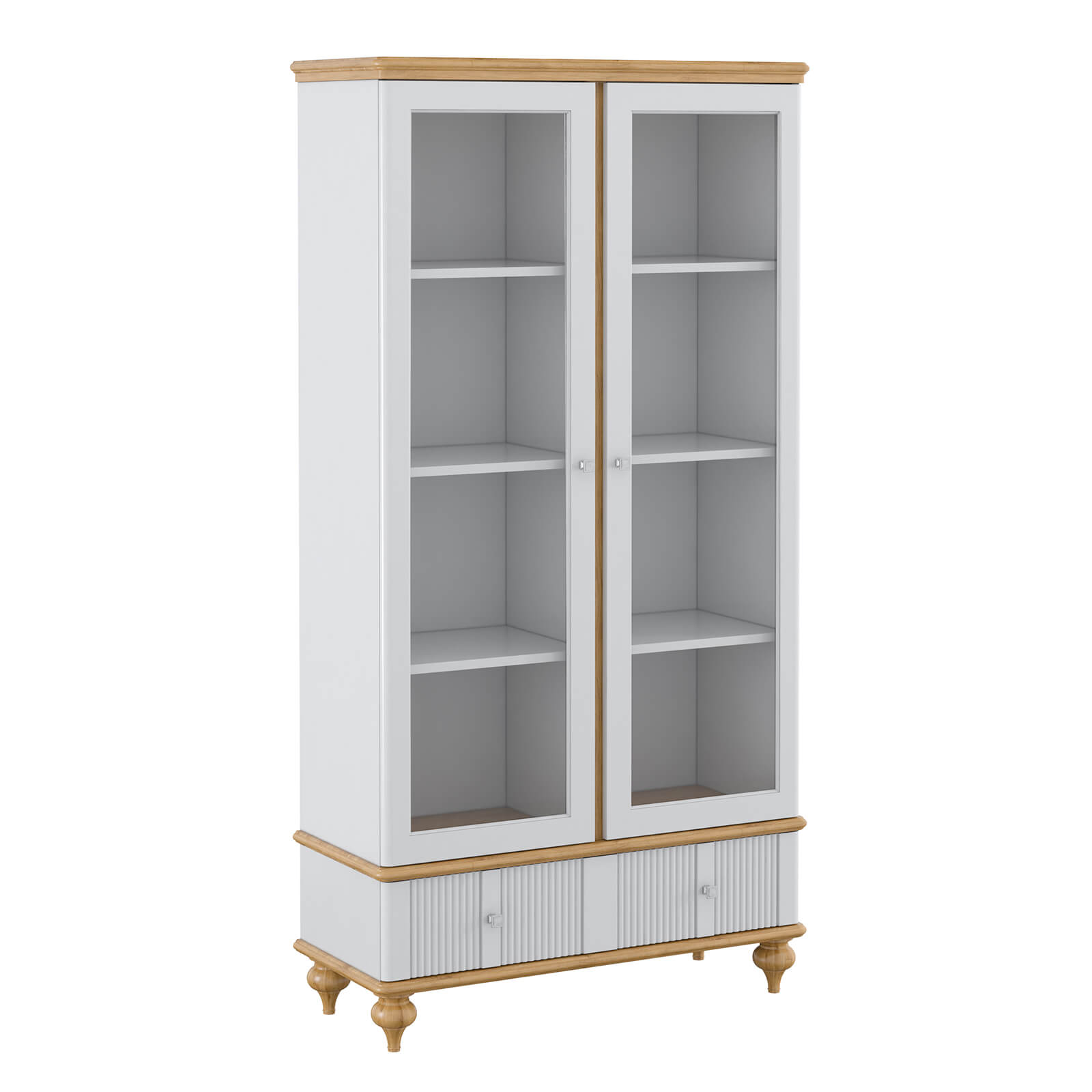 Шкаф оснащён фурнитурой от известных производителей: направляющие BLUM (Германия), петли HAFELE (Германия) и ручки Giusti (Италия). Все элементы выполнены в классическом стиле и имеют форму квадрата. Материал ручек — металл, цвет — состаренное серебро.