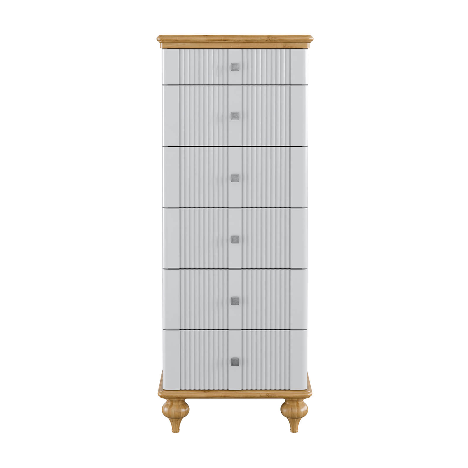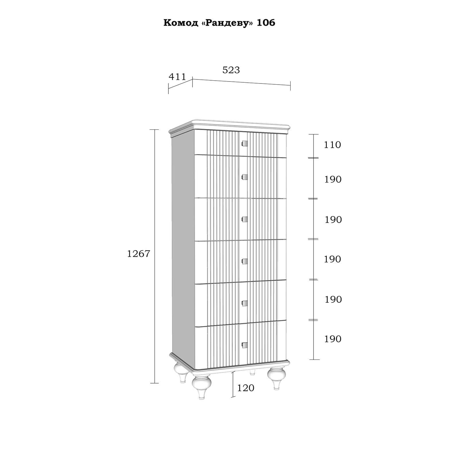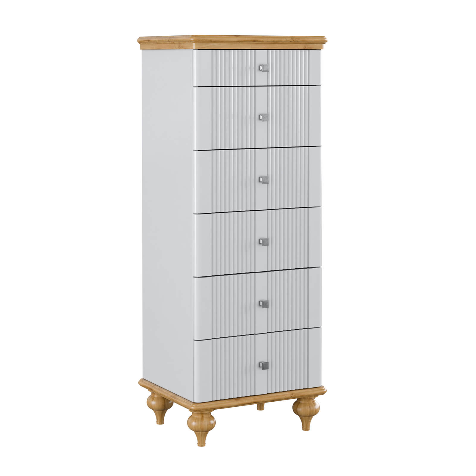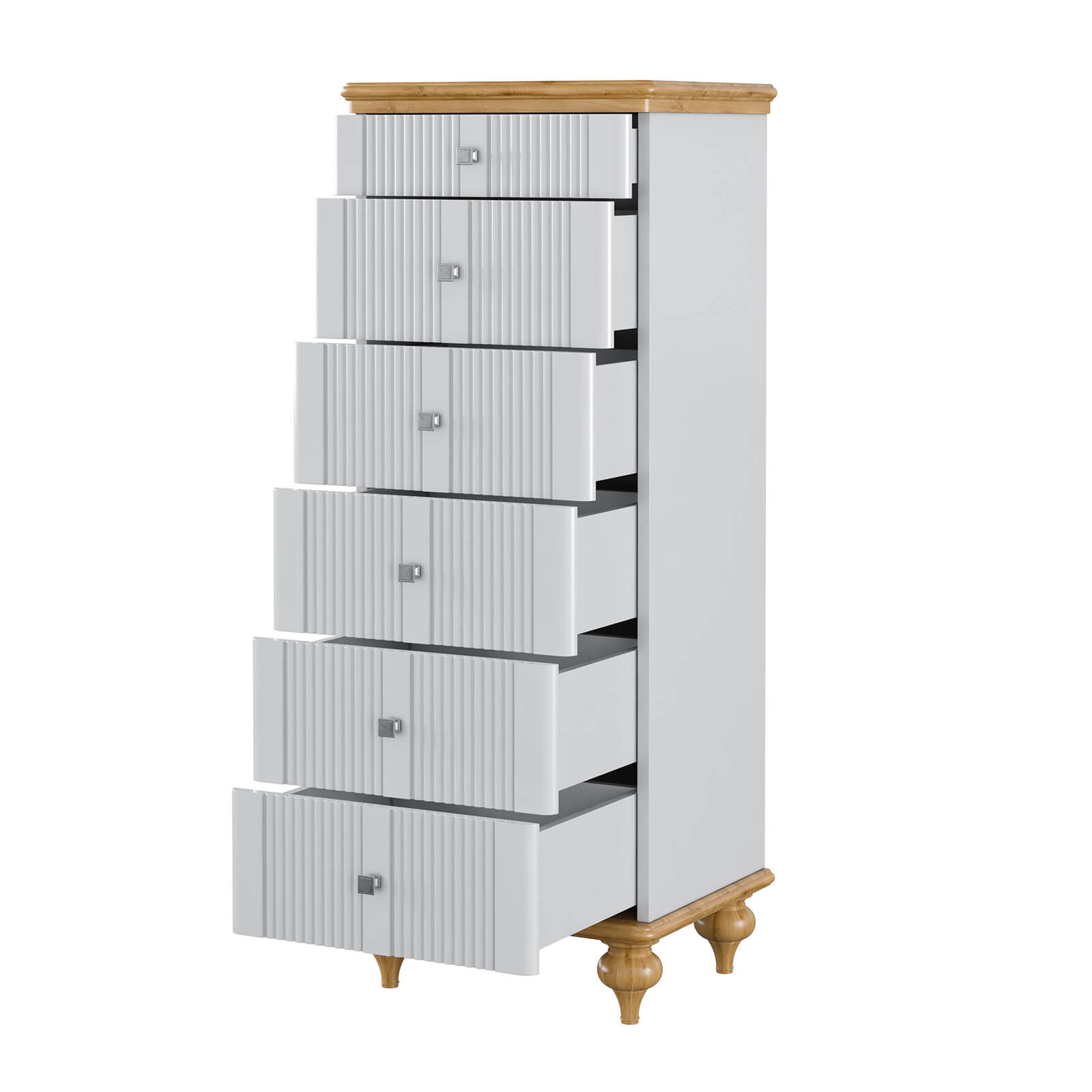 Комод оснащен шестью выдвижными ящиками. Фурнитура на ящиках с доводчиками.