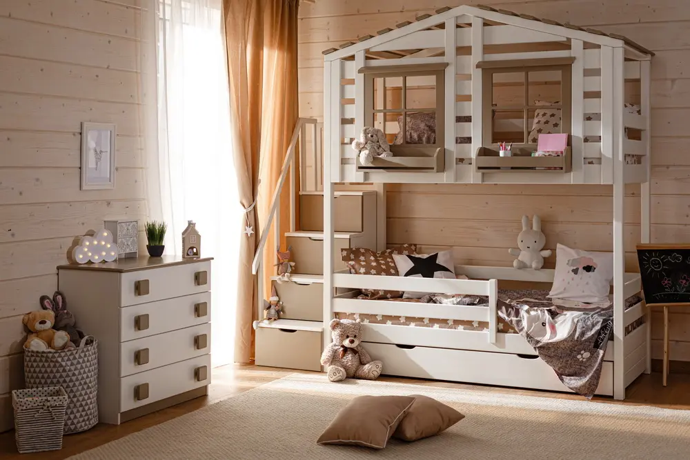 Мебель для детских и подростковых комнат «Тимберика Кидс» отличается интересным дизайном, который нравится детям, большим выбором цветов и безопасными конструкциями. В коллекции есть детские кровати, комоды, столы, стеллажи, шкафы и тумбы из натурального дерева.