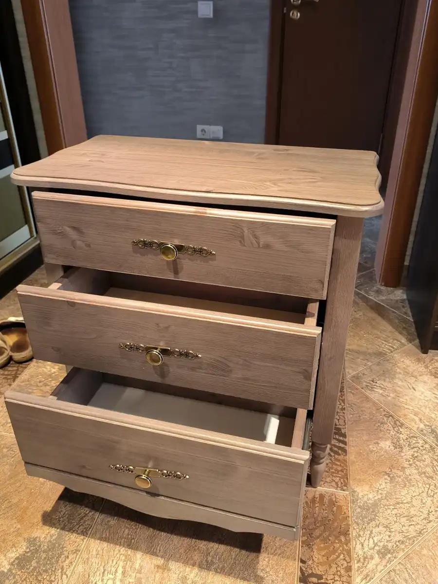 Материал - сосна, задние стенки, дно ящиков - ДВП.