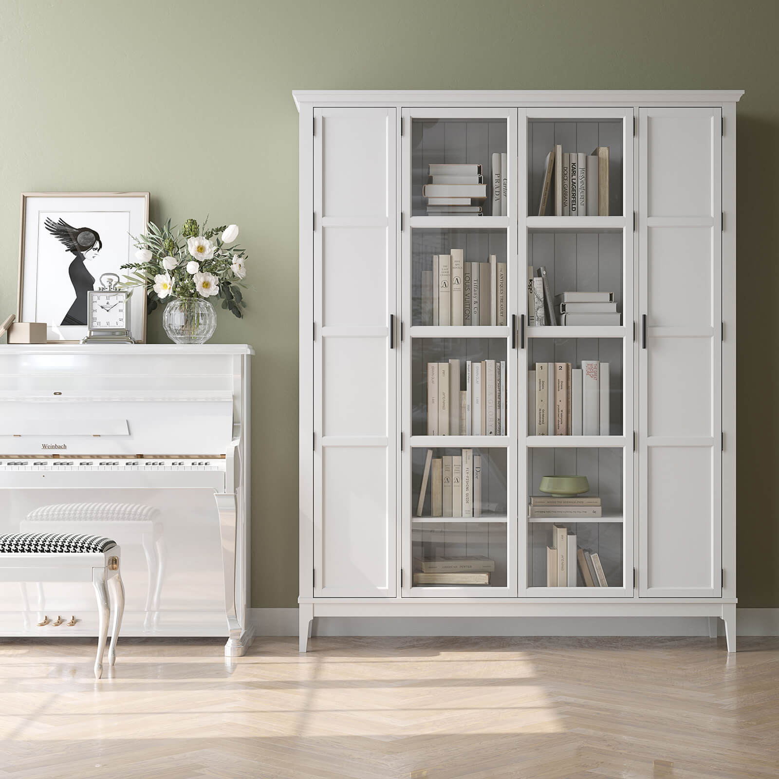Представляем книжный шкаф «Квадро-С» 422Ф, выполненный из массива сосны. Этот высокий шкаф с распашными стеклянными дверцами и филенчатыми элементами дизайна сочетает в себе функциональность и эстетику. Внутри расположены четыре широкие полки и восемь узких, что позволяет удобно разместить книги, декоративные предметы и другие аксессуары.