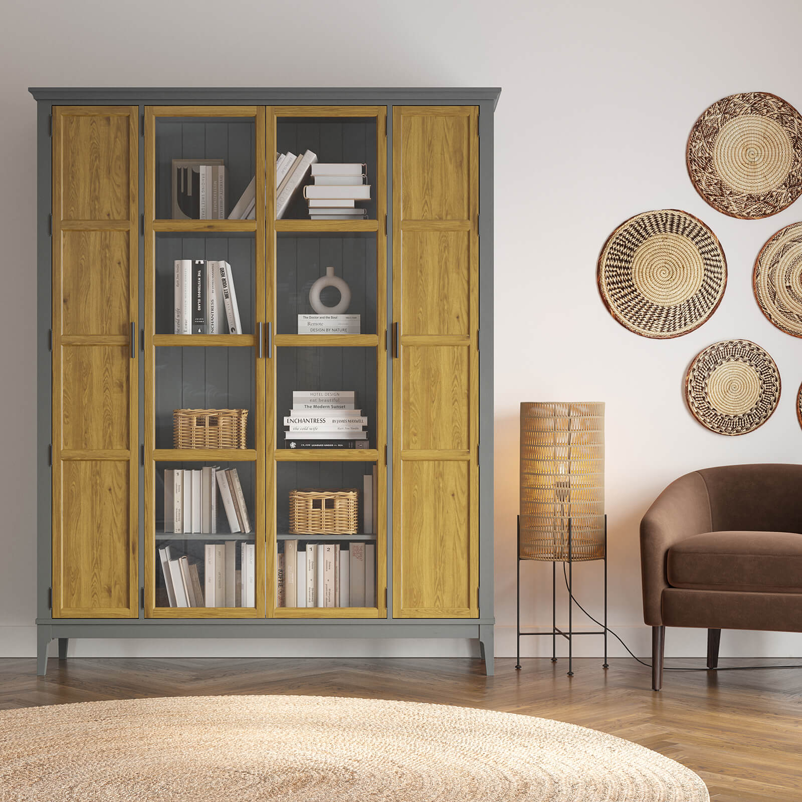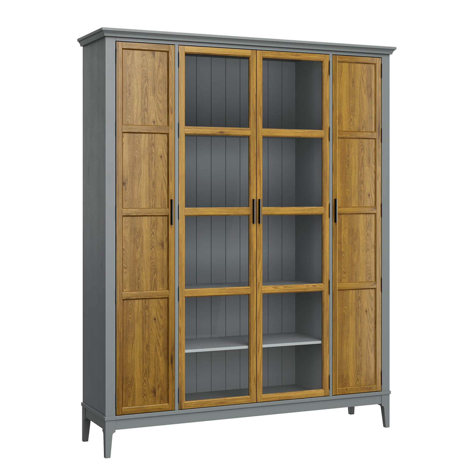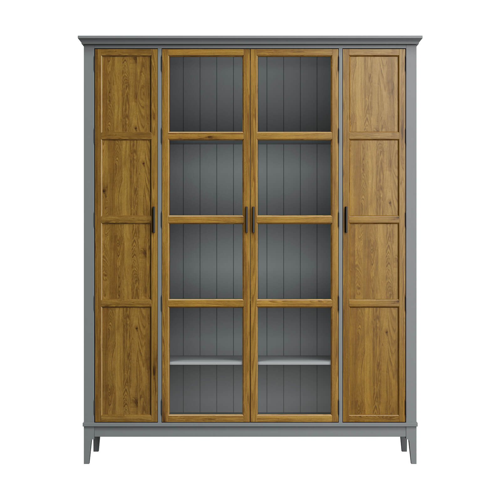 Представляем книжный шкаф «Квадро-С» 422Ф, выполненный из массива сосны. Этот высокий шкаф с распашными стеклянными дверцами и филенчатыми элементами дизайна сочетает в себе функциональность и эстетику. Внутри расположены четыре широкие полки и восемь узких, что позволяет удобно разместить книги, декоративные предметы и другие аксессуары.
