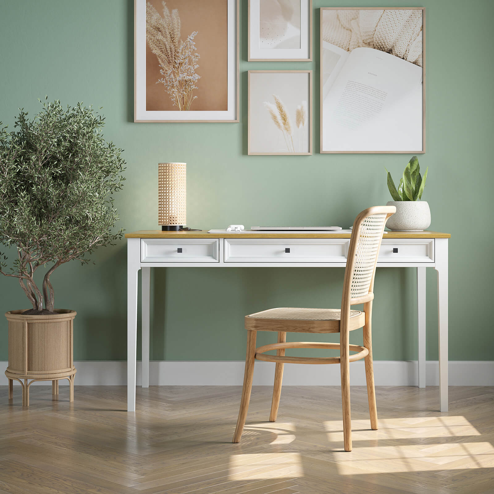 Классический стол из коллекции «Квадро-С». Широкая удобная столешница подойдет для работы за компьютером. Под ней расположено три выдвижных ящика для канцтоваров, документов и разных мелочей. Все детали сделаны из натурального массива дерева, что обеспечивает их прочность и надежность. Отличное приобретение для личного кабинета, гостиной или детской. Широкая столешница удобна как для работы за компьютером, так и для рисования и другого ручного труда.