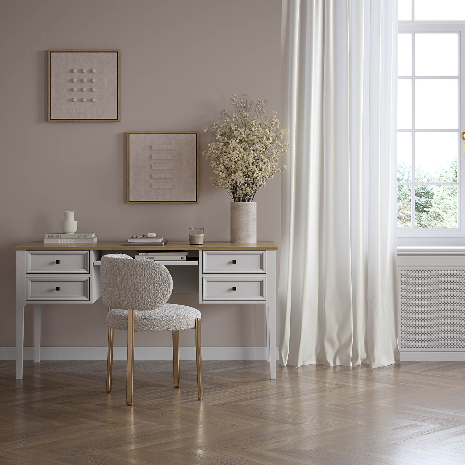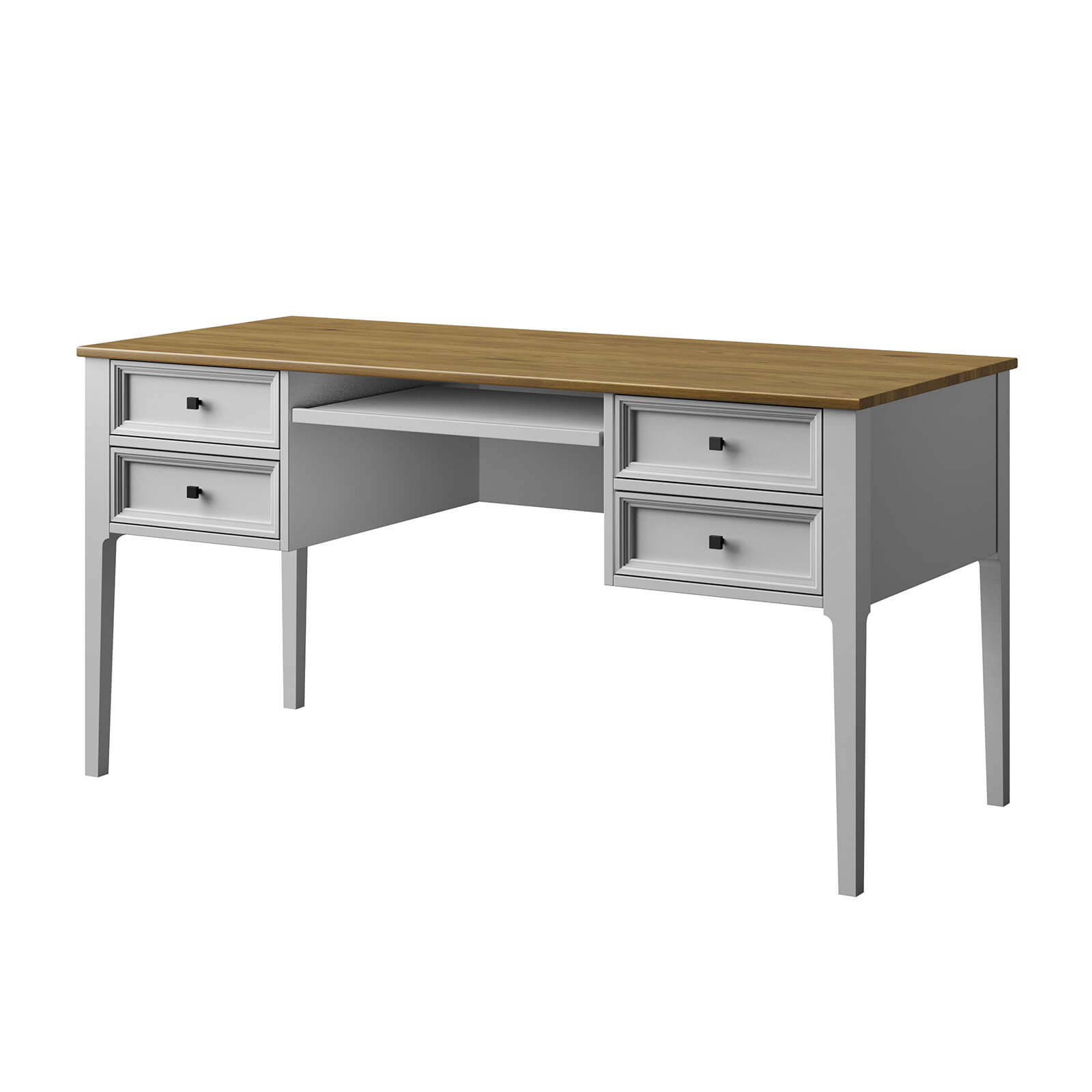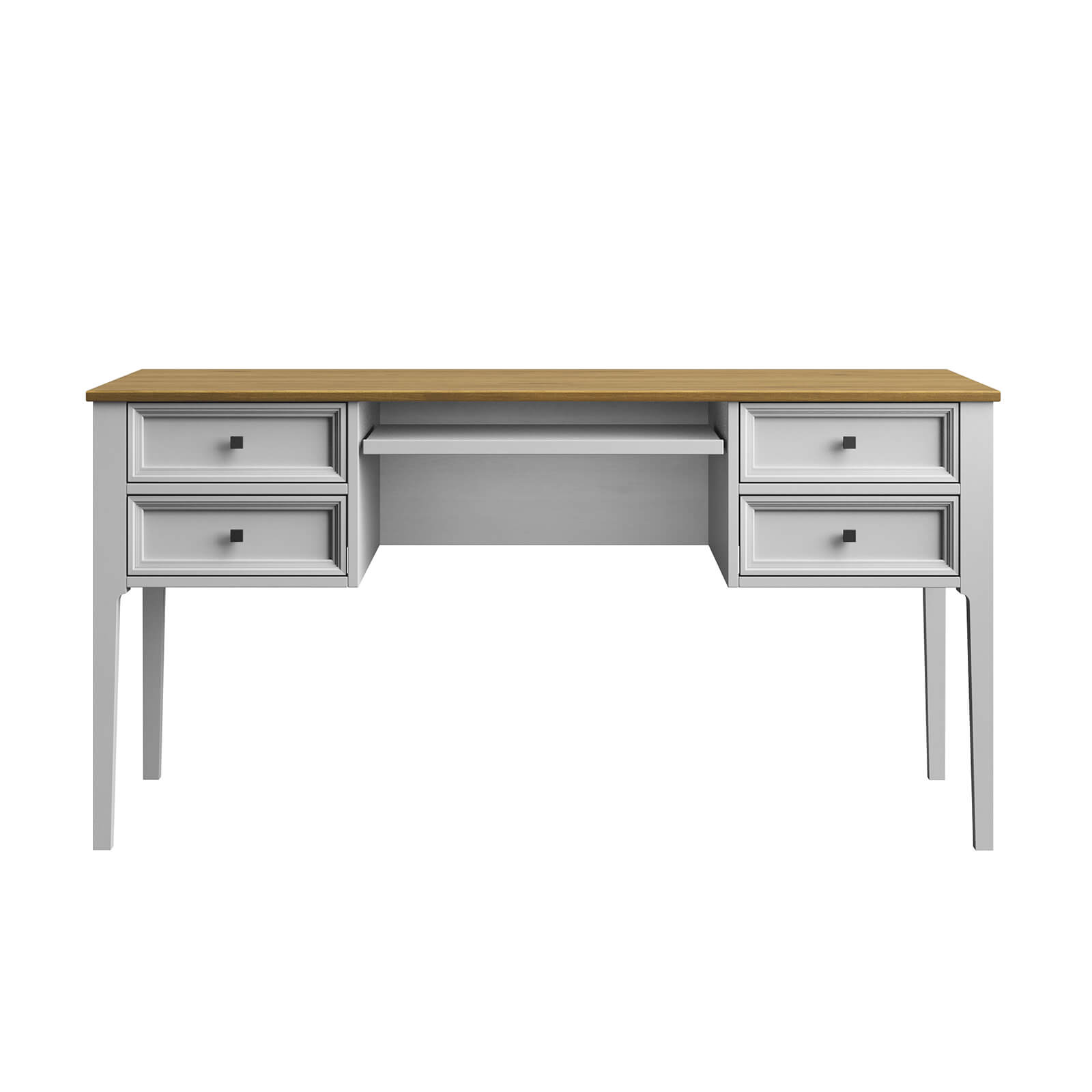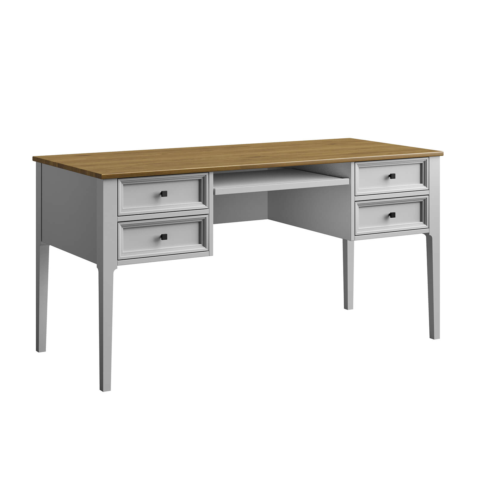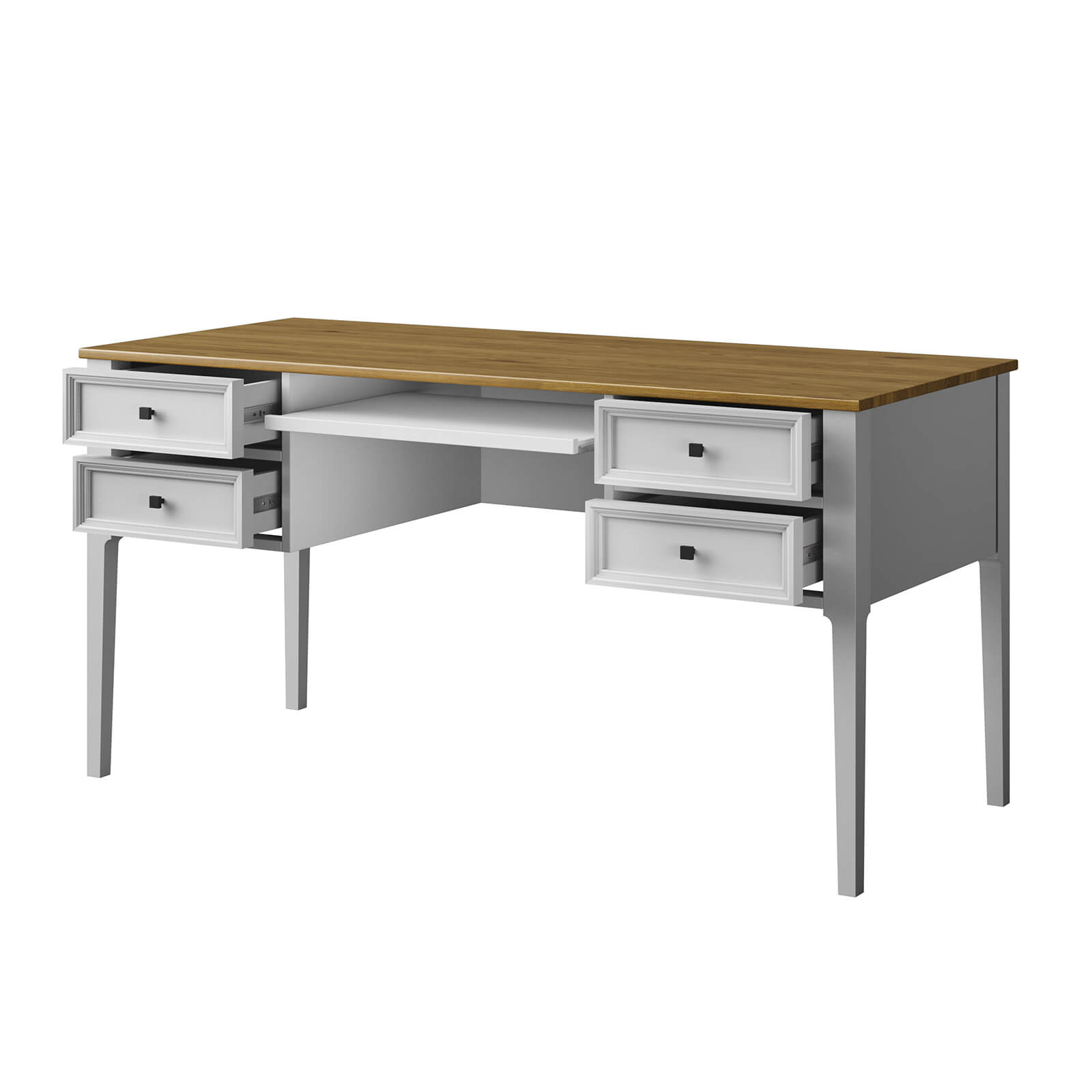 Классический стол из коллекции «Квадро-С». Широкая удобная столешница подойдет для работы за компьютером. Под ней расположено четыре выдвижных ящика и выдвижная полка для канцтоваров, документов и разных мелочей. Все детали сделаны из натурального массива дерева, что обеспечивает их прочность и надежность. Отличное приобретение для личного кабинета, гостиной или детской. Широкая столешница удобна как для рисования и другого ручного труда.