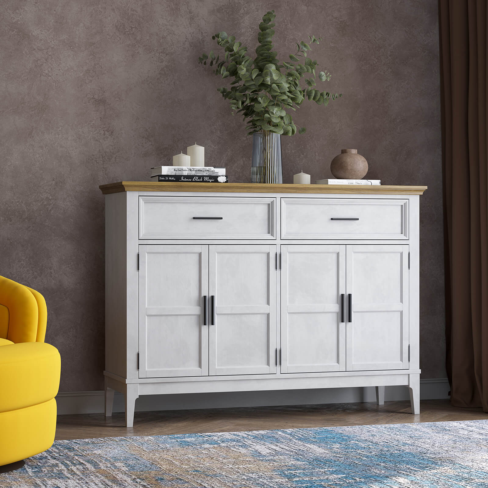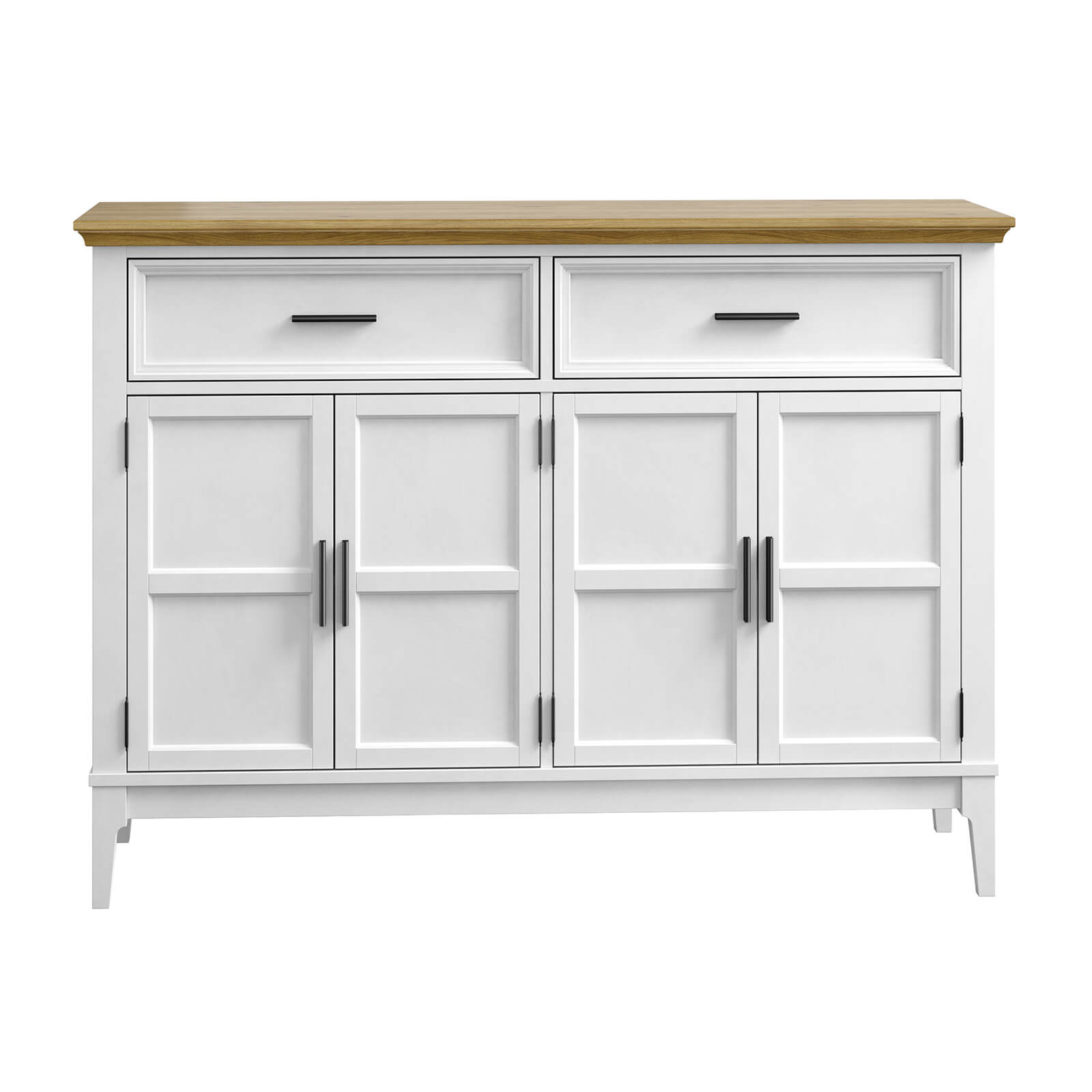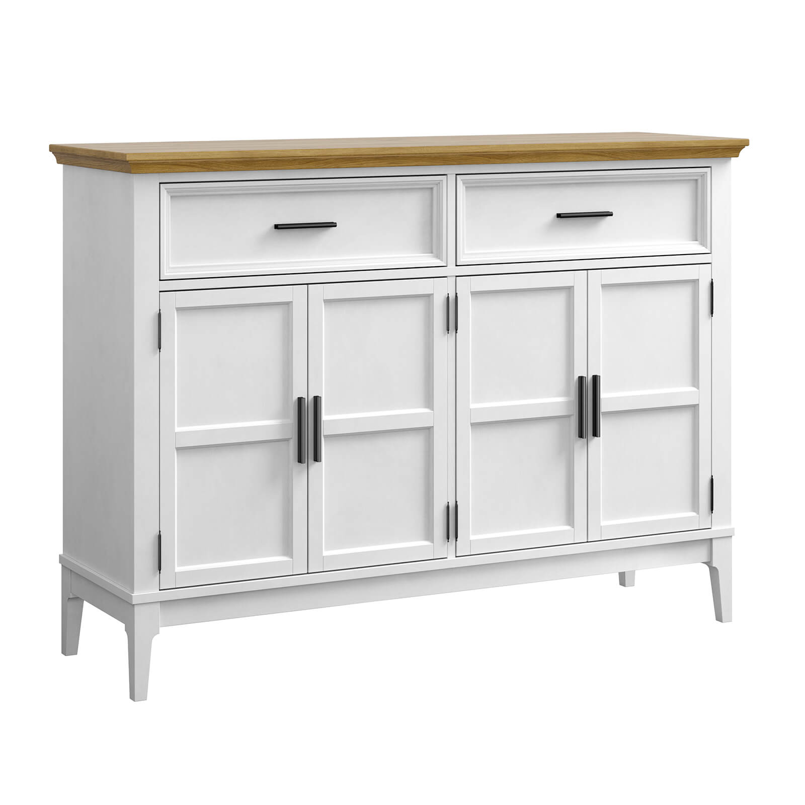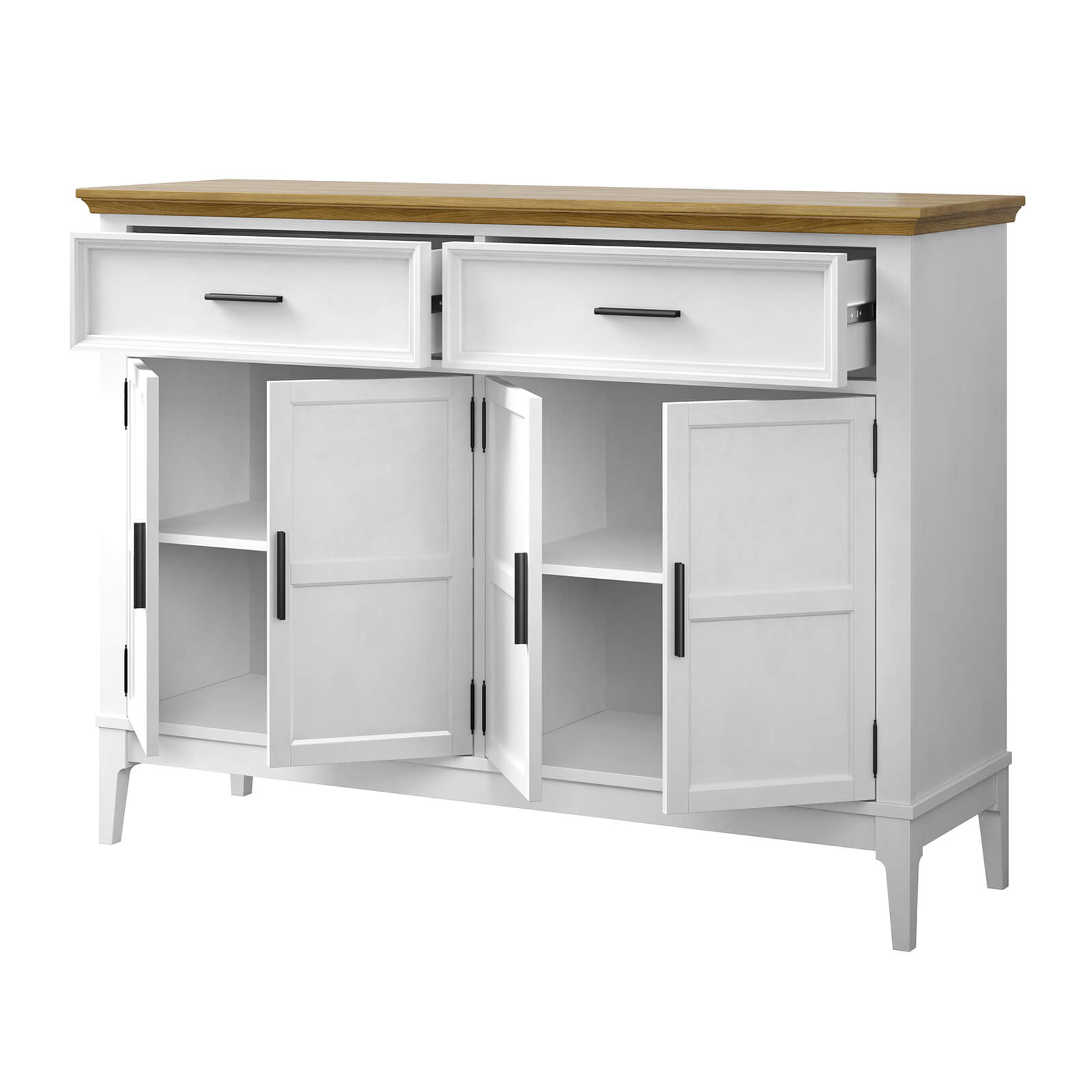 Состоит из двух вместительных отделений с полками за распашными дверками сверху два широких выдвижных ящика.
