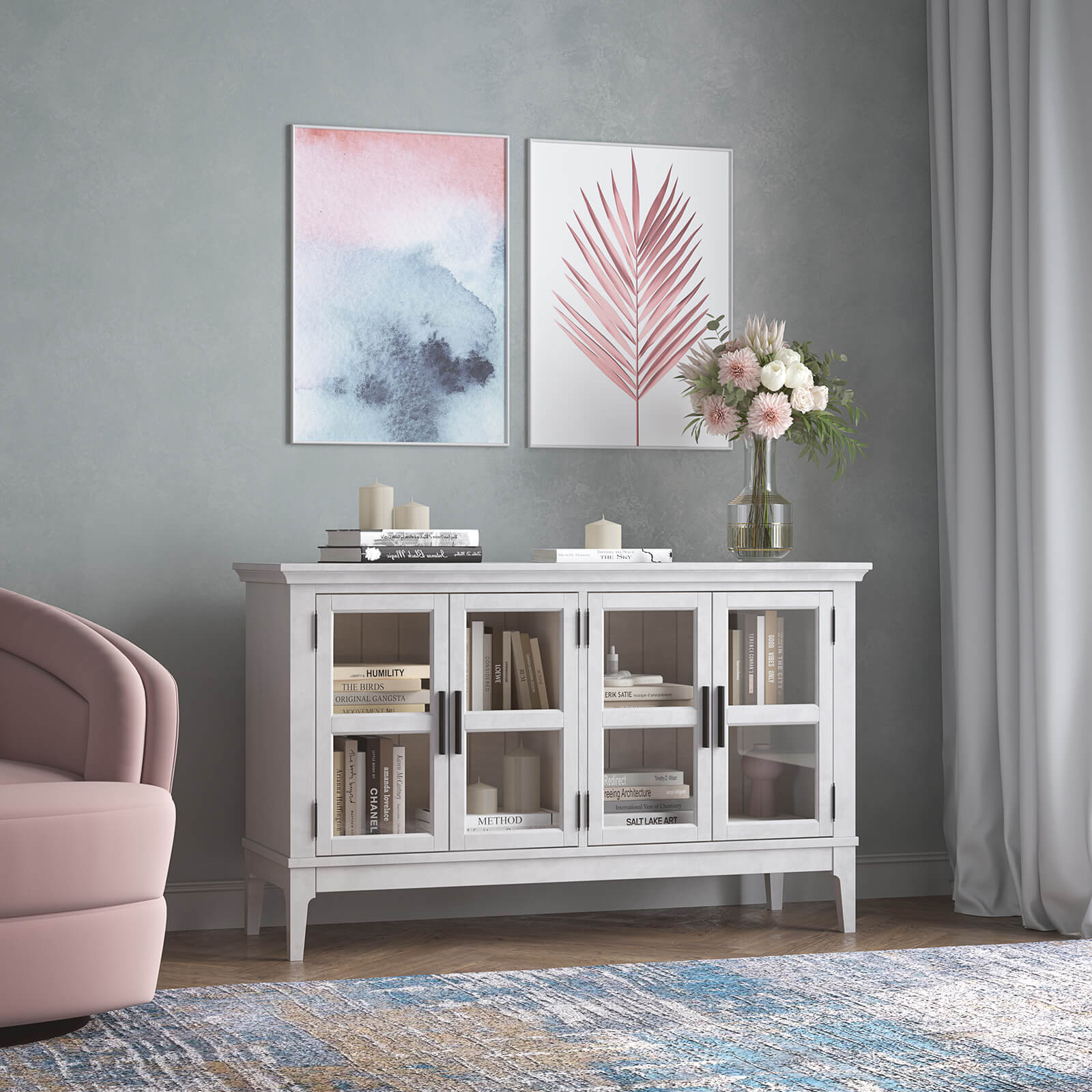 Модель доступна в цвете «белый лак», «белый лак/антик 24», «серый 7042/антик 24».
