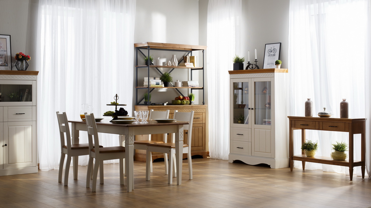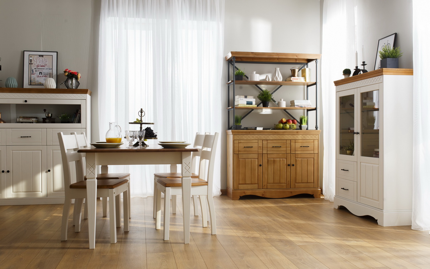 Мебель для гостиной «Дания» из натурального дерева выполнена в скандинавском стиле и напоминает о простой, но красивой северной природе. В коллекции есть обеденные столы, стулья, комоды с ящиками и дверцами, открытые стеллажи, журнальные столы, серванты, тумбы ТВ.