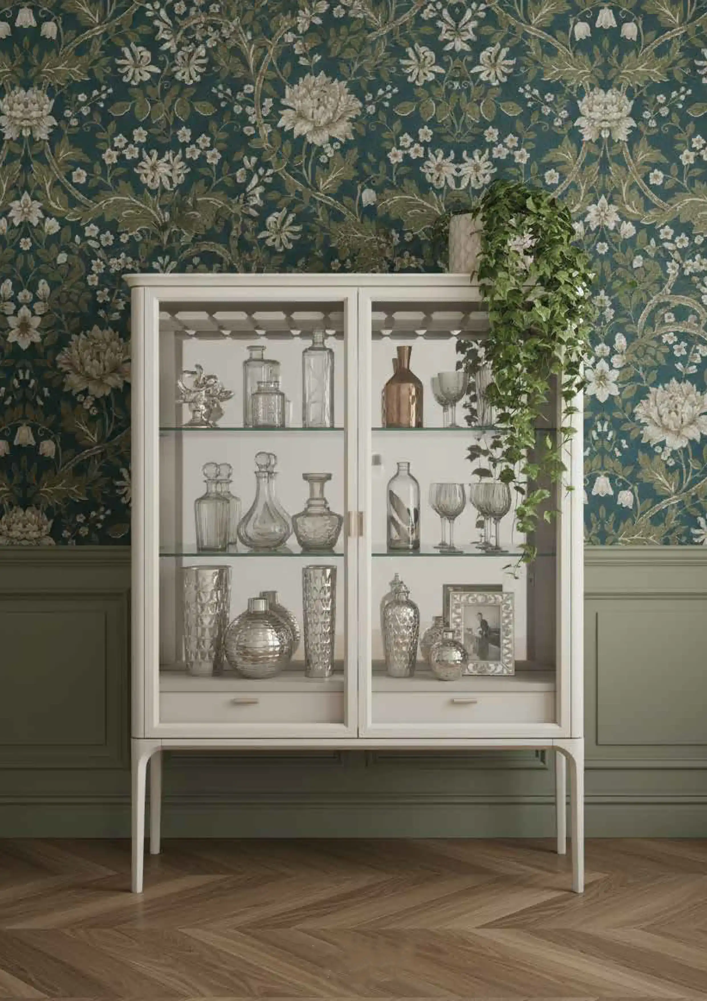 Корпуса и фасады изготавливают из МДФ, а ножки из массива бука. Донья ящиков и задние стенки изделий делают из березовой фанеры, донья ящиков изнутри покрываются микровелюром. Ящики устанавливаются на шариковые направляющие полного выдвижения, без доводчиков (можно оснастить доводчиками, с доплатой). Дверцы и ящики могут быть с ручками или без ручек, дверцы без ручек открываются при нажатии на фасад (механизм Tip-on).