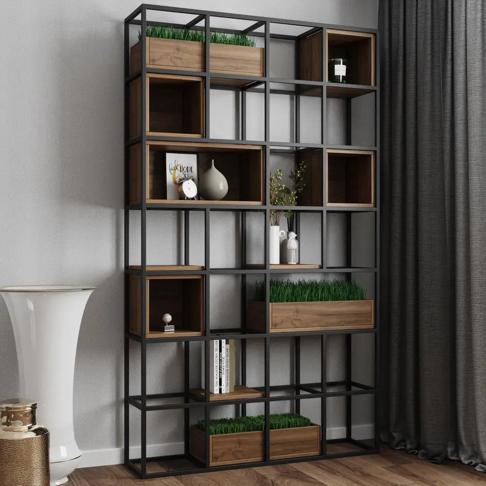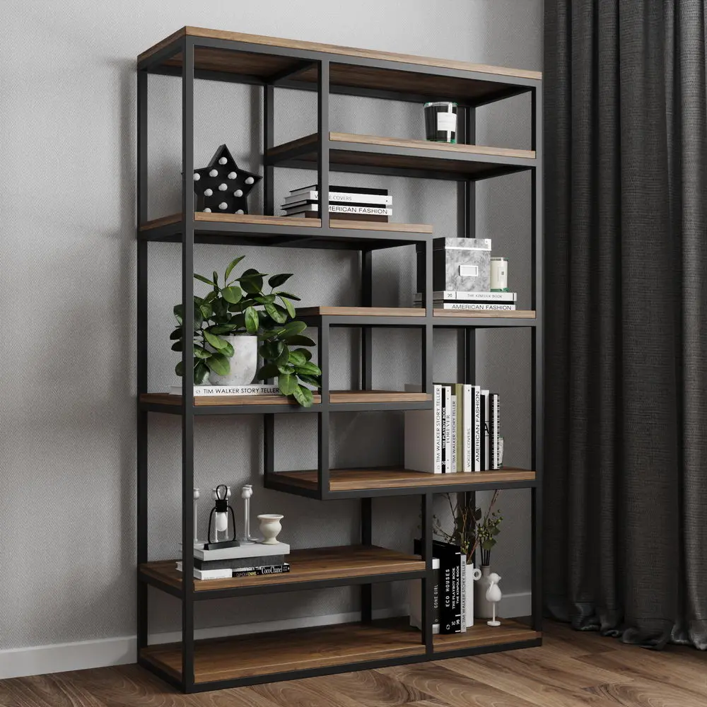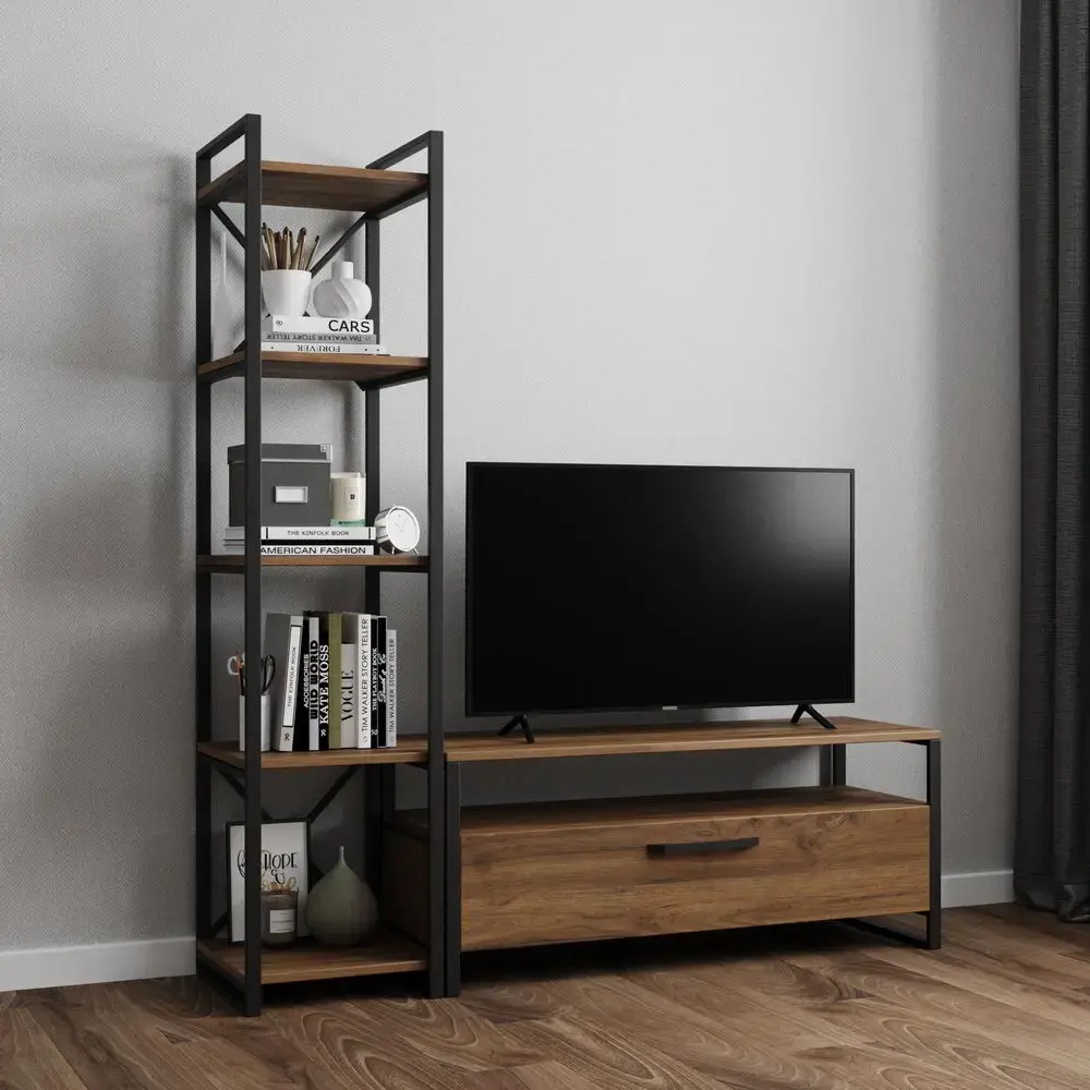 В мебели для гостиной «Лофт» металлические каркасы удачно сочетаются с корпусами и фасадами из натурального дерева. В коллекцию входят обеденные столы, журнальные столики, тумбы ТВ, стеллажи с открытыми полками, консоли, скамьи с мягкими сиденьями.