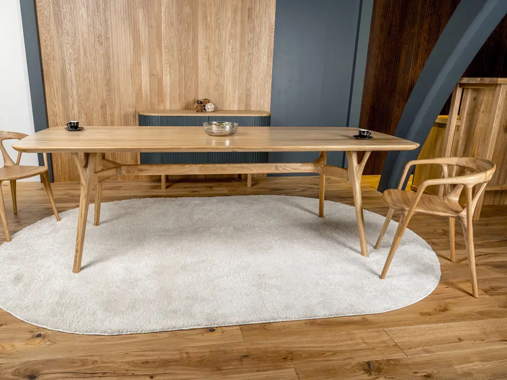 Мебель для гостиной «Ирвинг» из дуба отличается современным дизайном, удобством и долговечностью. В коллекцию входят дубовые обеденные столы разных форм и размеров, кресла, обеденные и барные стулья, табуреты.