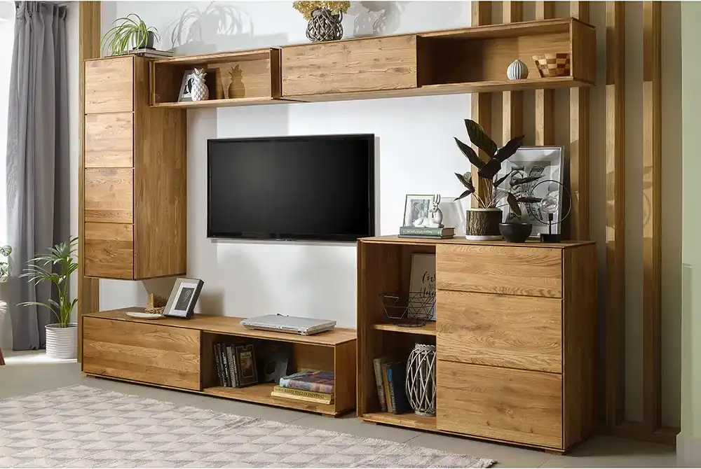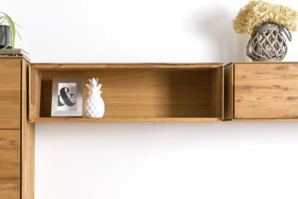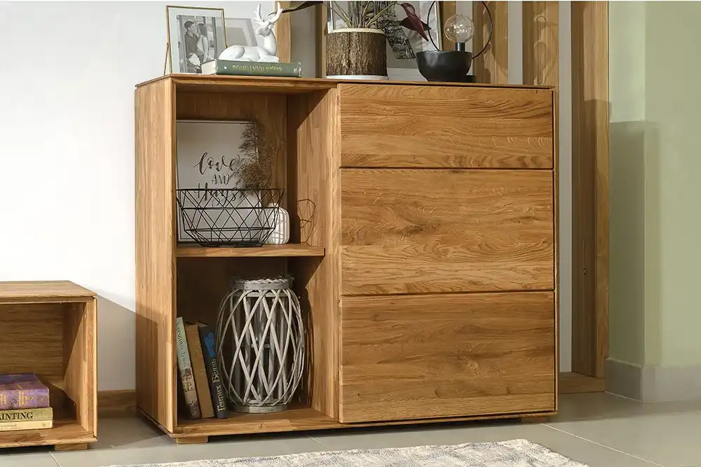 Мебель из натурального дуба отлично вписывается в разные интерьеры, будь то лофт, классика или гостиная в скандинавском стиле. Это очень красивые и долговечные изделия, которыми будет с удовольствием пользоваться вся семья. В коллекции «Комбо» представлены комоды, тумбы ТВ и навесные полки. На выбор предлагается несколько вариантов тонировки от производителя.