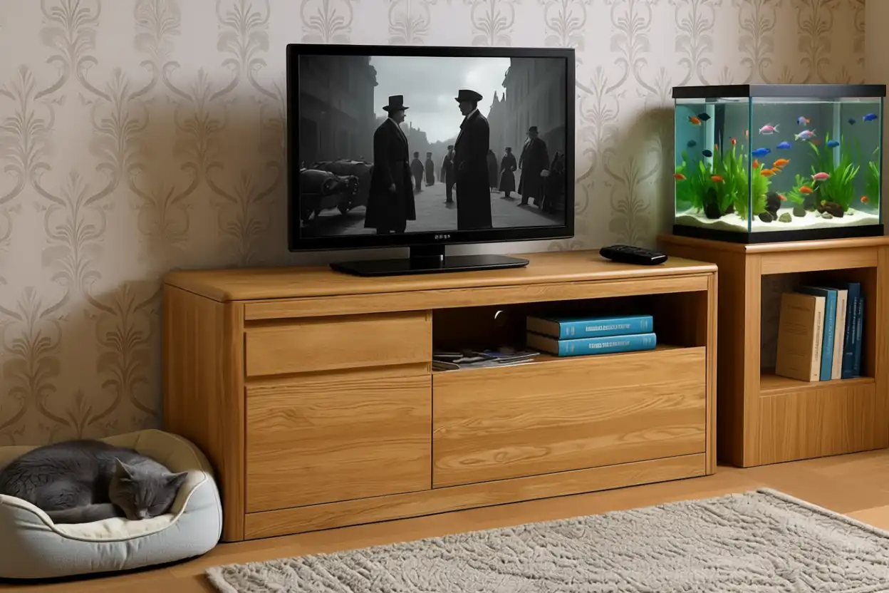 Корпуса и фасады производятся из отборного массива дуба, для изготовления задних стенок используется фанера, шпонированная дубом. Ящики устанавливаются на шариковых направляющих с доводчиками. Петли для навешивания дверей тоже имеют механизм плавного доведения. На дверцах и ящиках удобные фрезерованные ручки. В тумбах ТВ есть отверстия для вывода проводов.