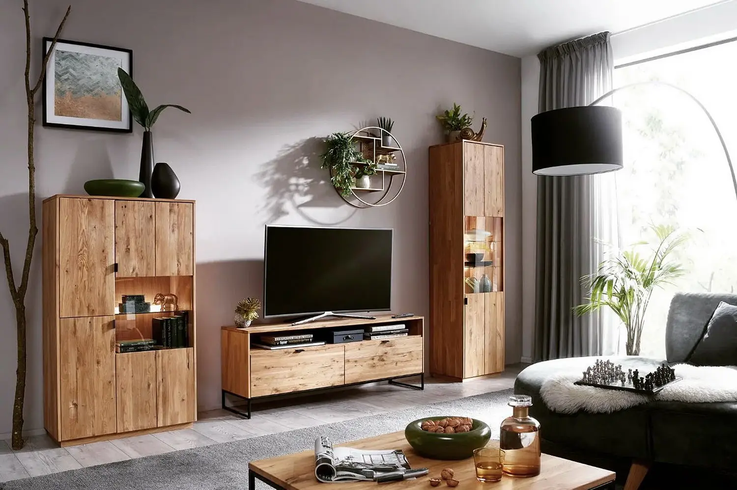 В коллекции «Манхэттен ST» представлена мебель из натурального дерева для гостиных, спален, прихожих. Это шкафы-витрины, буфеты, журнальные столики, комоды, навесные шкафы и полки, тумбы для ТВ.