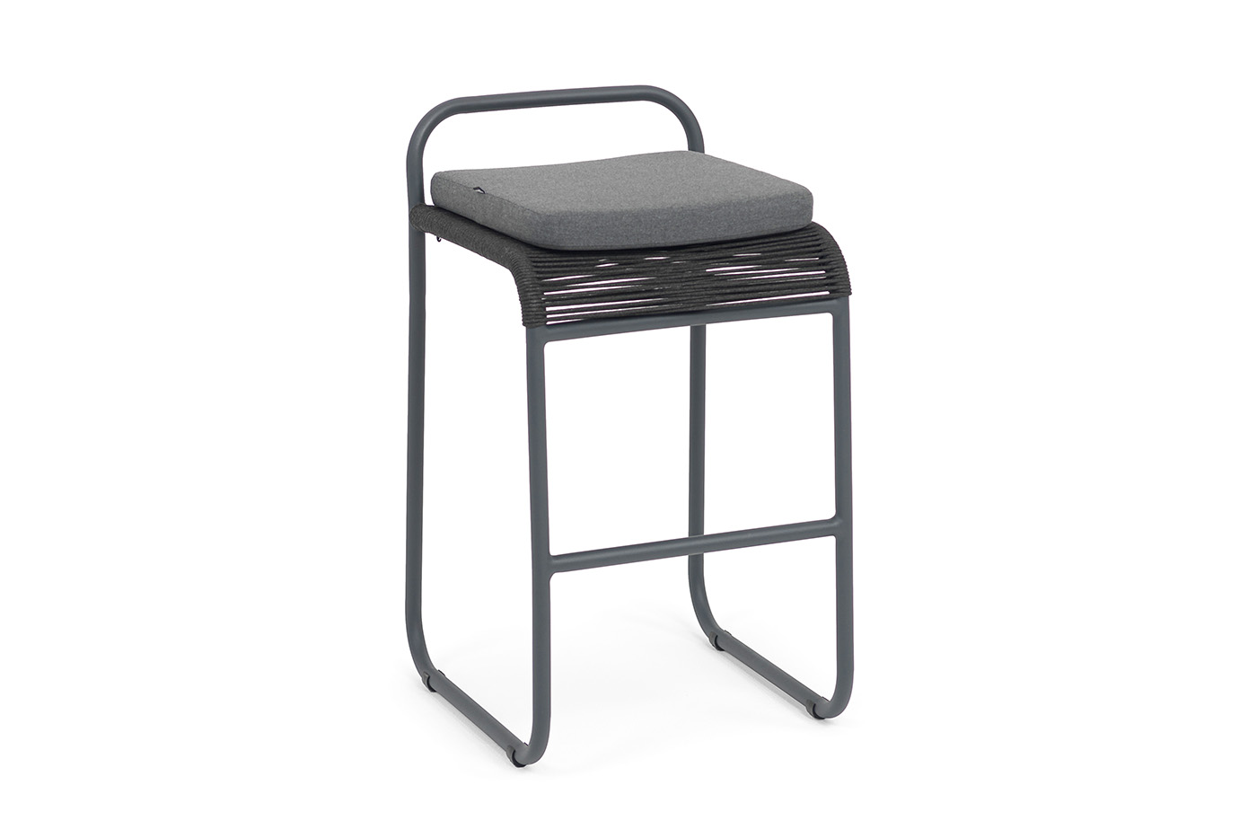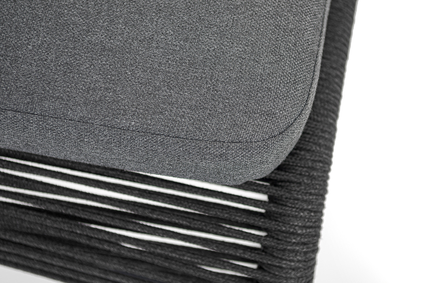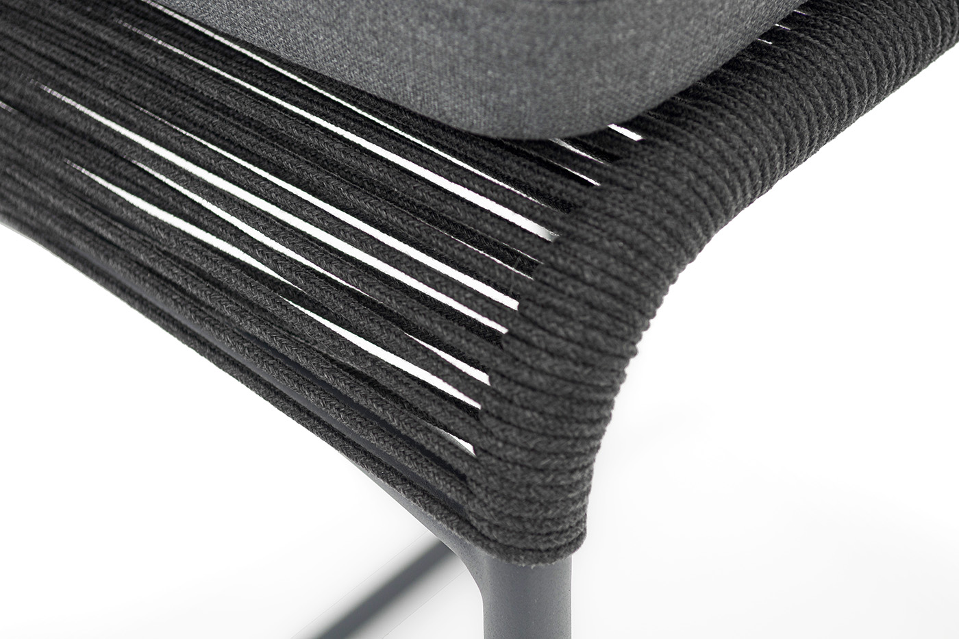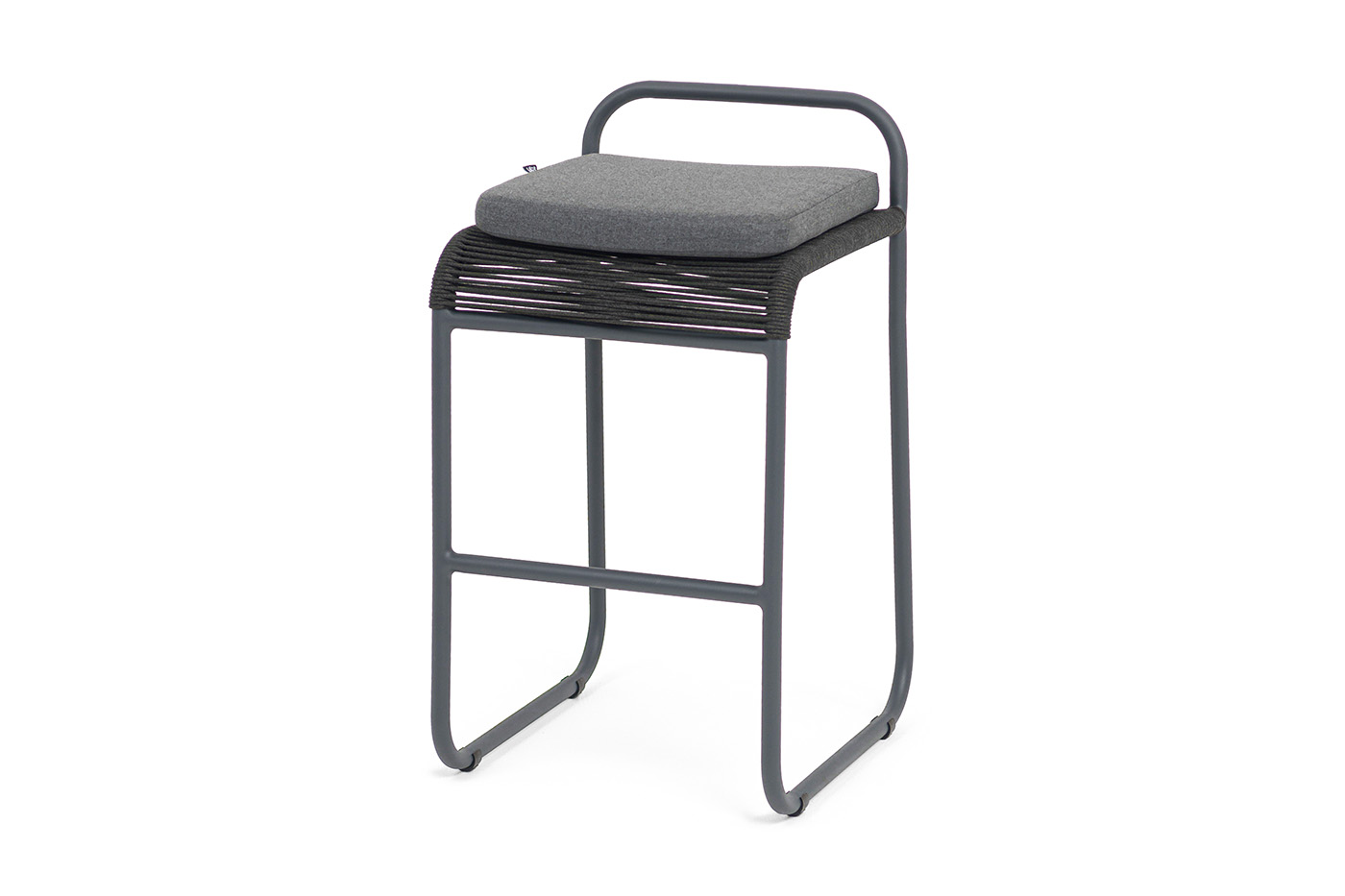 "Ането" стул барный плетеный из роупа, каркас алюминий темно-серый (RAL7024) муар, роуп темно-серый круглый, ткань темно-серая 027