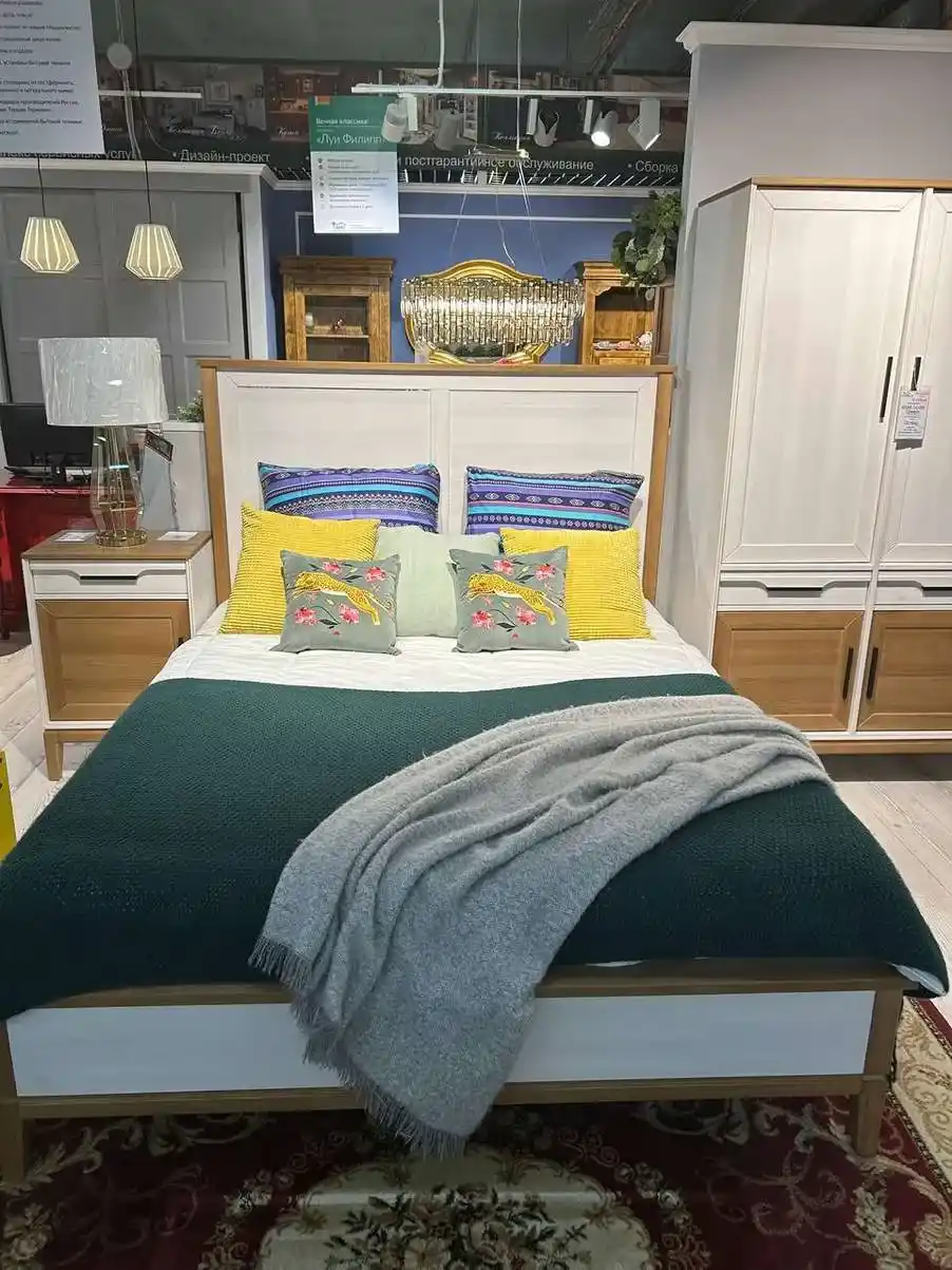 Элегантная двуспальная кровать «Гранада» из натурального массива сосны станет центральным элементом вашей спальни.