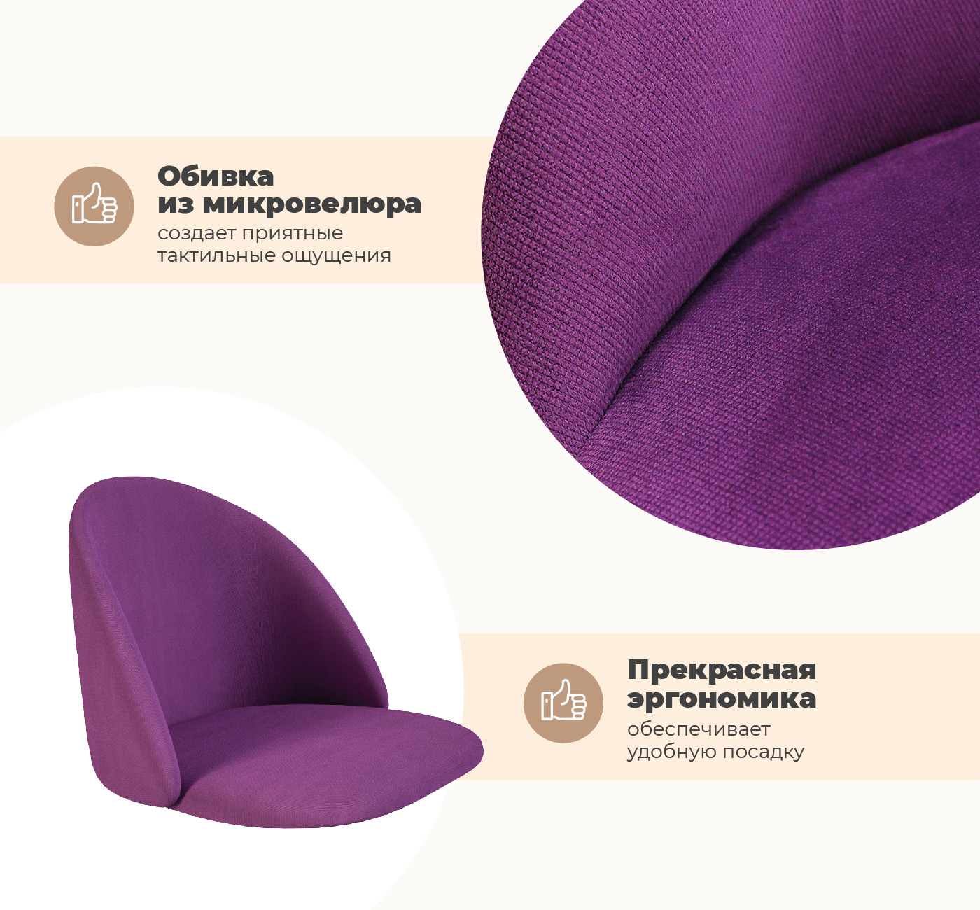 Классический вид сидению придает микровелюровая обивка. Готовый стул выглядит уютным и удобным, а его дизайн способен преобразить обстановку! Обратите внимание на детали, мягкое сидение, отведенная назад дугообразная спинка, отвечают за вашу эргономичную посадку. Располагайтесь с книгой или чашкой чая – бархатистая микровелюровая обивка обеспечит Вам должный комфорт. Сидение из микровелюра изысканно смотрится при любом варианте освещения: и естественном, и искусственном, а также легко чистится.В качестве мягкого наполнителя используется поролон.
