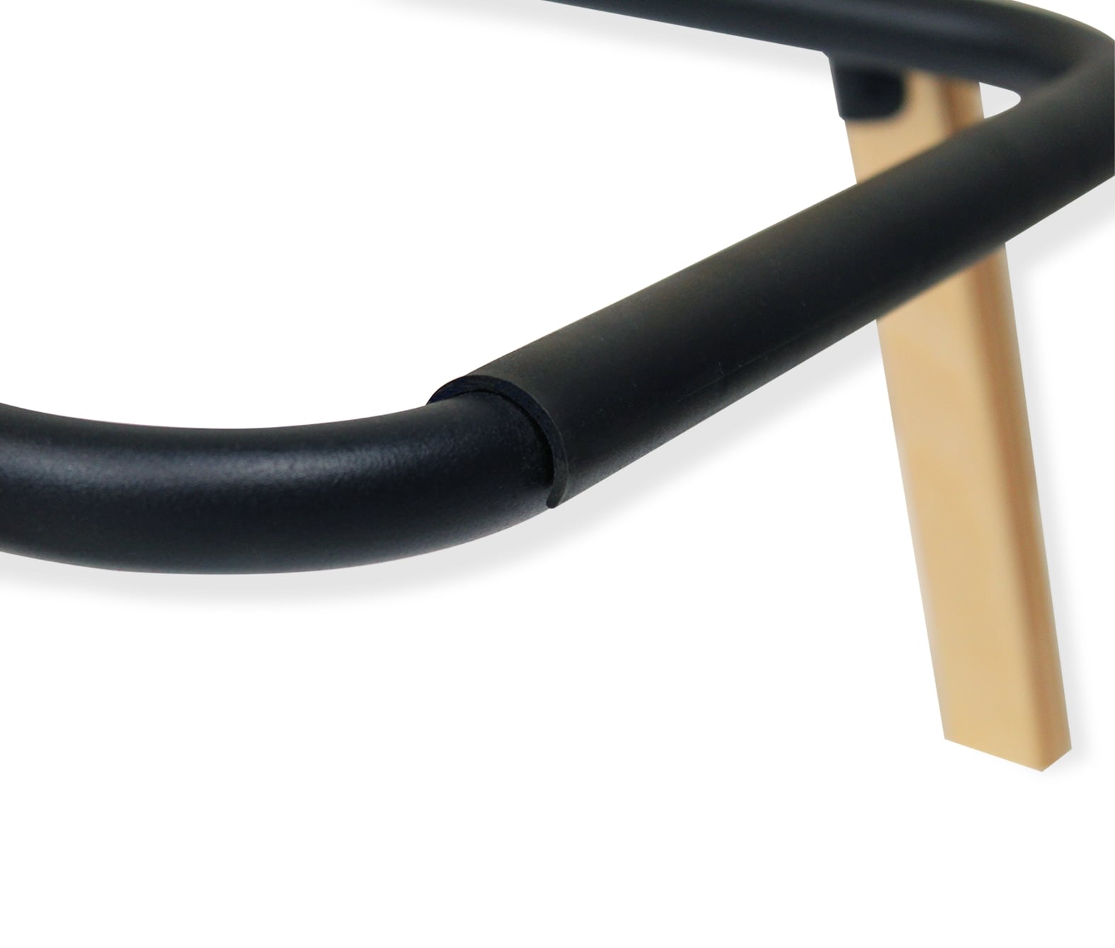 Каркас выполнен из экологически чистых остаточных материалов древесины и массива. Надежная металлическая подножка выполнена из металлической трубы и окрашена порошковой краской, устойчивой к механическому воздействию.