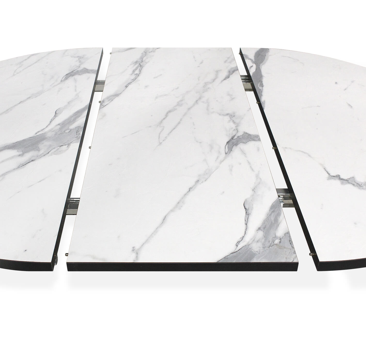 Изделие оснащено простым раздвижным механизмом бесцаргового типа. В собранном виде по центру столешницы имеется стыковочный шов. Выдвижную часть необходимо хранить отдельно. Для того, чтобы разложить стол, нужно: