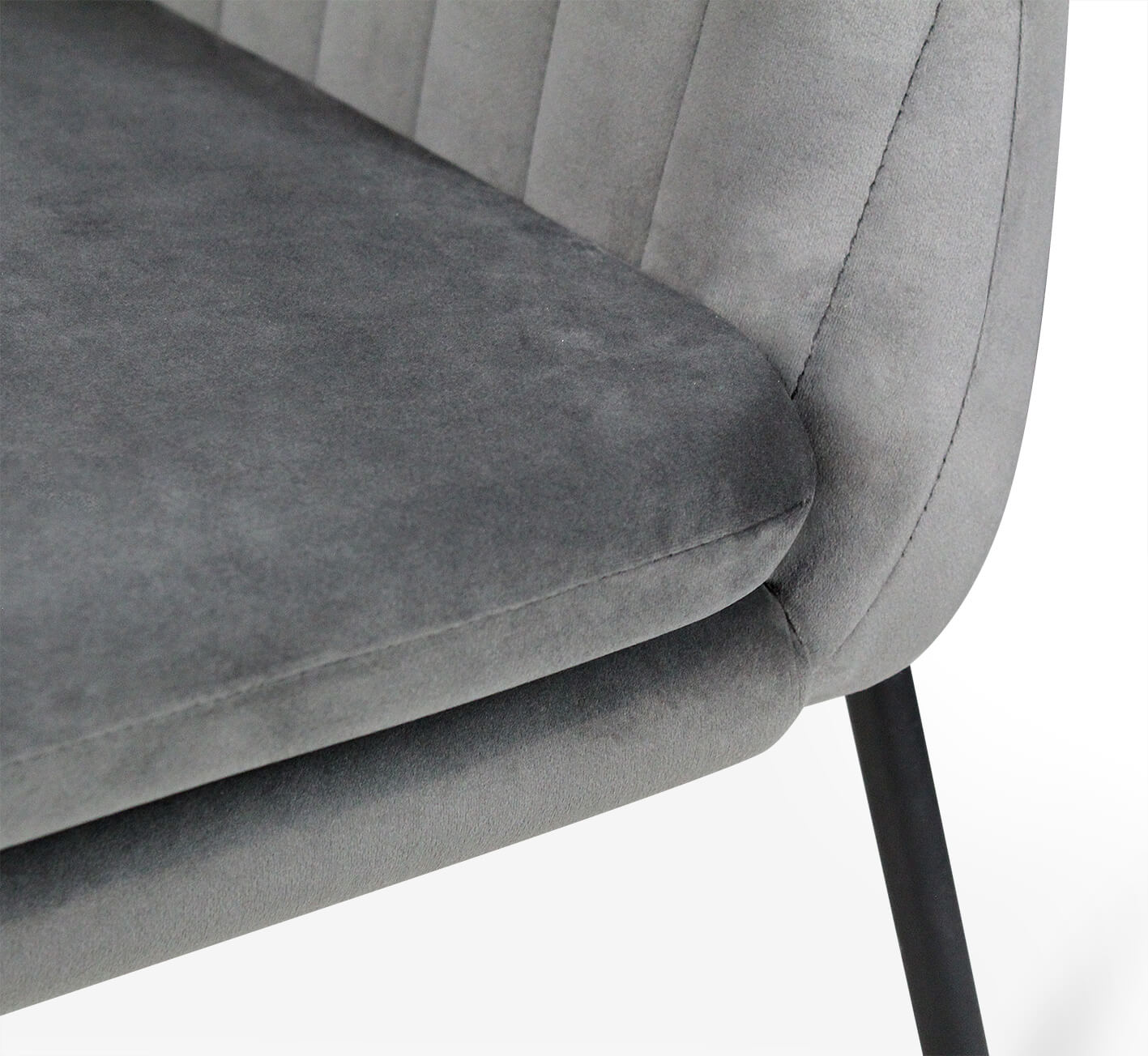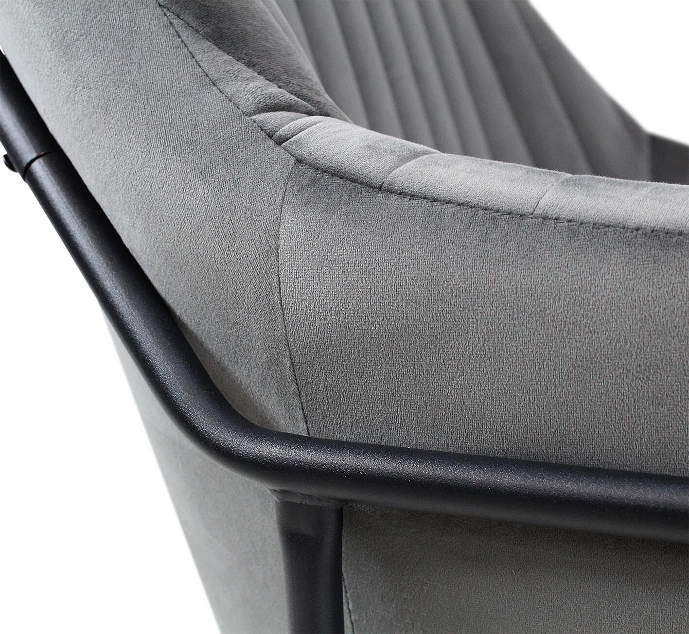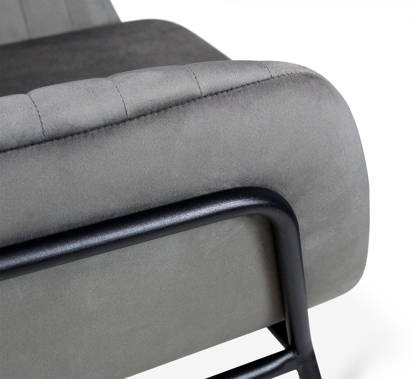 Мягкое уютное кресло в современном стиле, обитое серым микровелюром, на каркасе из черного металла. Благодаря своему универсальному дизайну и лаконичному сочетанию цветов такое кресло гармонично впишется практически в любой современный интерьер кафе, бара, ресторана, офиса, общественных учреждений, залов ожидания или дома.