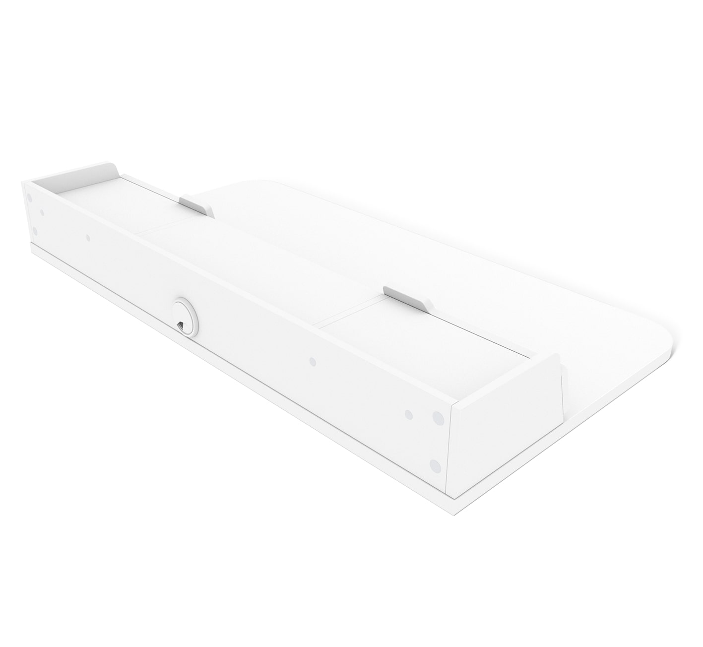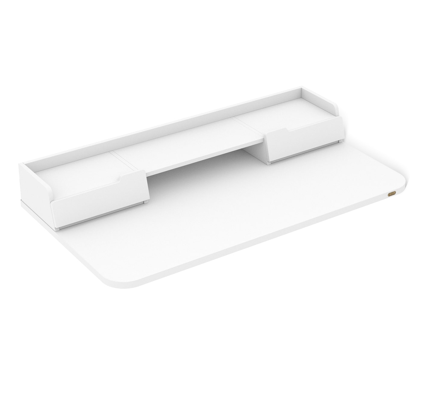 Сдержанный стиль столешницы идеально сочетается с мебелью в современном стиле. На рабочей поверхности расположены два вместительных выдвижных ящика высотой 165 мм и шириной 318 мм для хранения разных вещей. Удобная ниша между ящиками на столешнице подходит для ноутбука. Столешница оборудована системой кабель-менеджмента. В заднем бортике имеется отверстие для проводов, что позволяет удобно расположить зарядку для ноутбука или технические кабели компьютера.