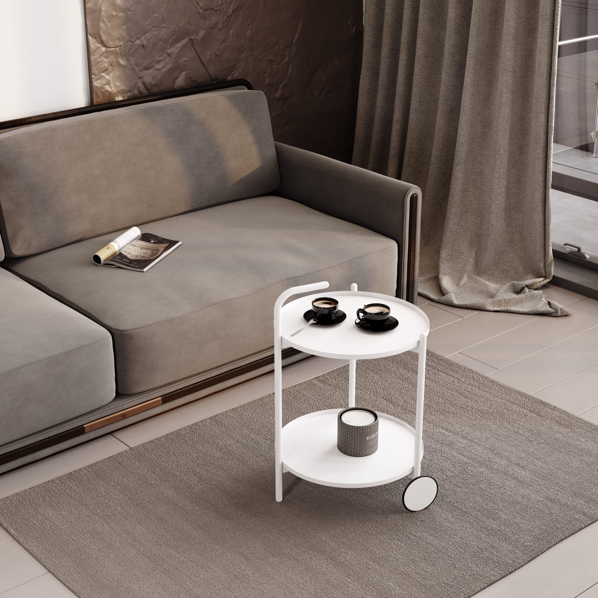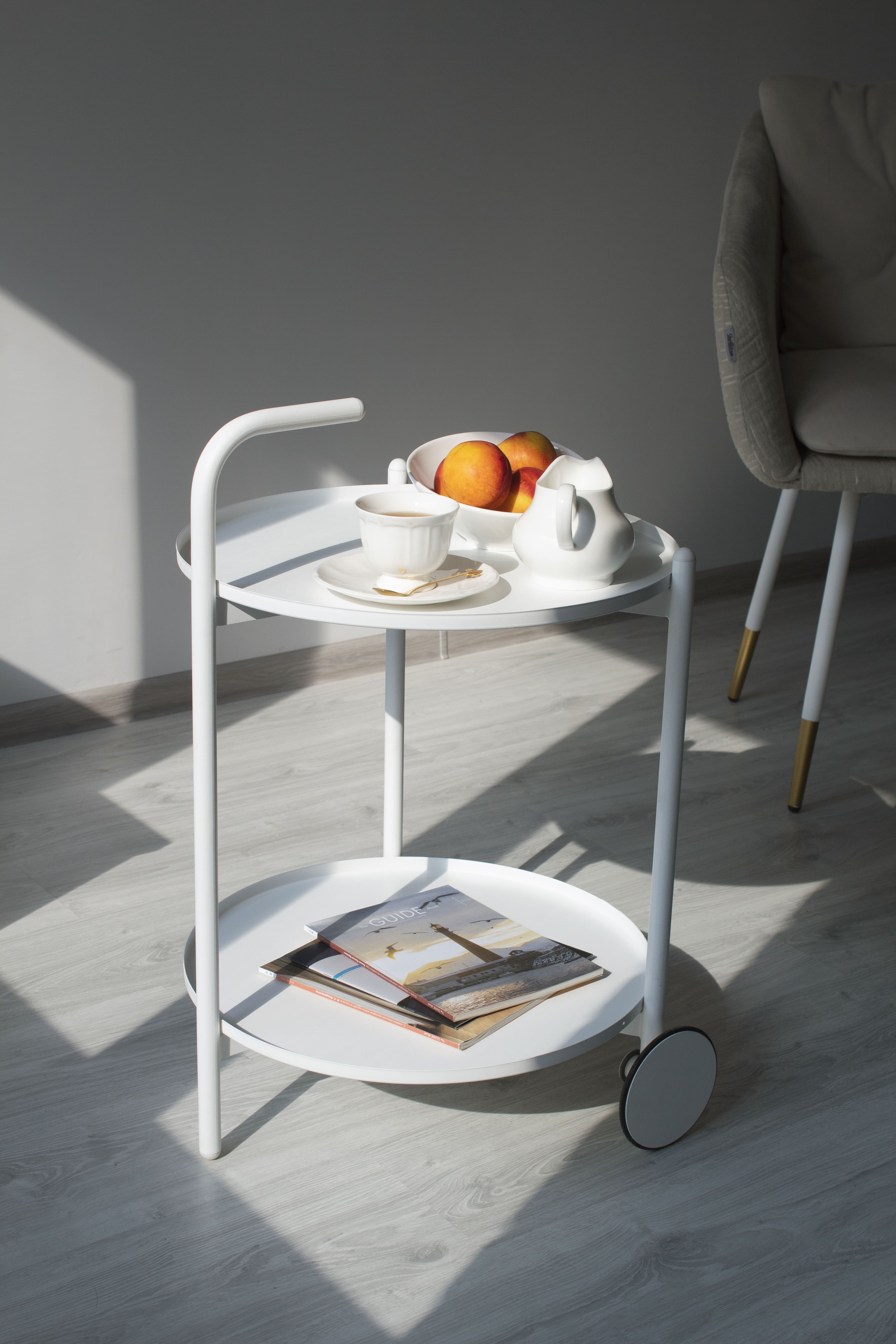 Двухъярусный сервировочный столик на колесах— это практичное дизайнерское решение для интерьера гостиной, спальни, кухни или кабинета. Благодаря своей компактности и функциональности, приставной столик станет незаменимым помощником в организации пространства.