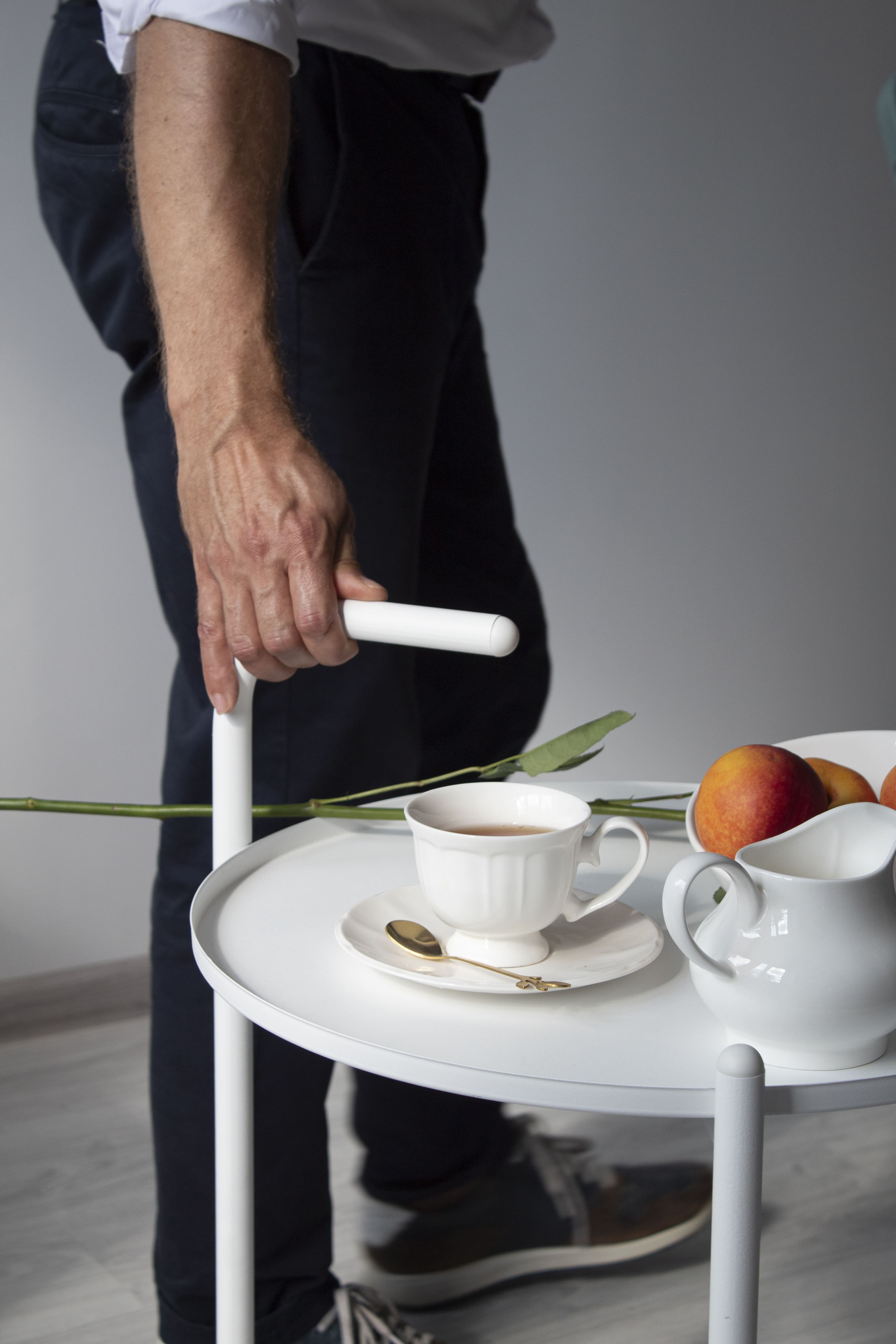 Оснащен 2-мя подносами, на которых можно разместить журналы, фрукты с напитками, декоративные элементы, а также быстро собрать и отвезти грязную посуду на кухню после приема гостей.