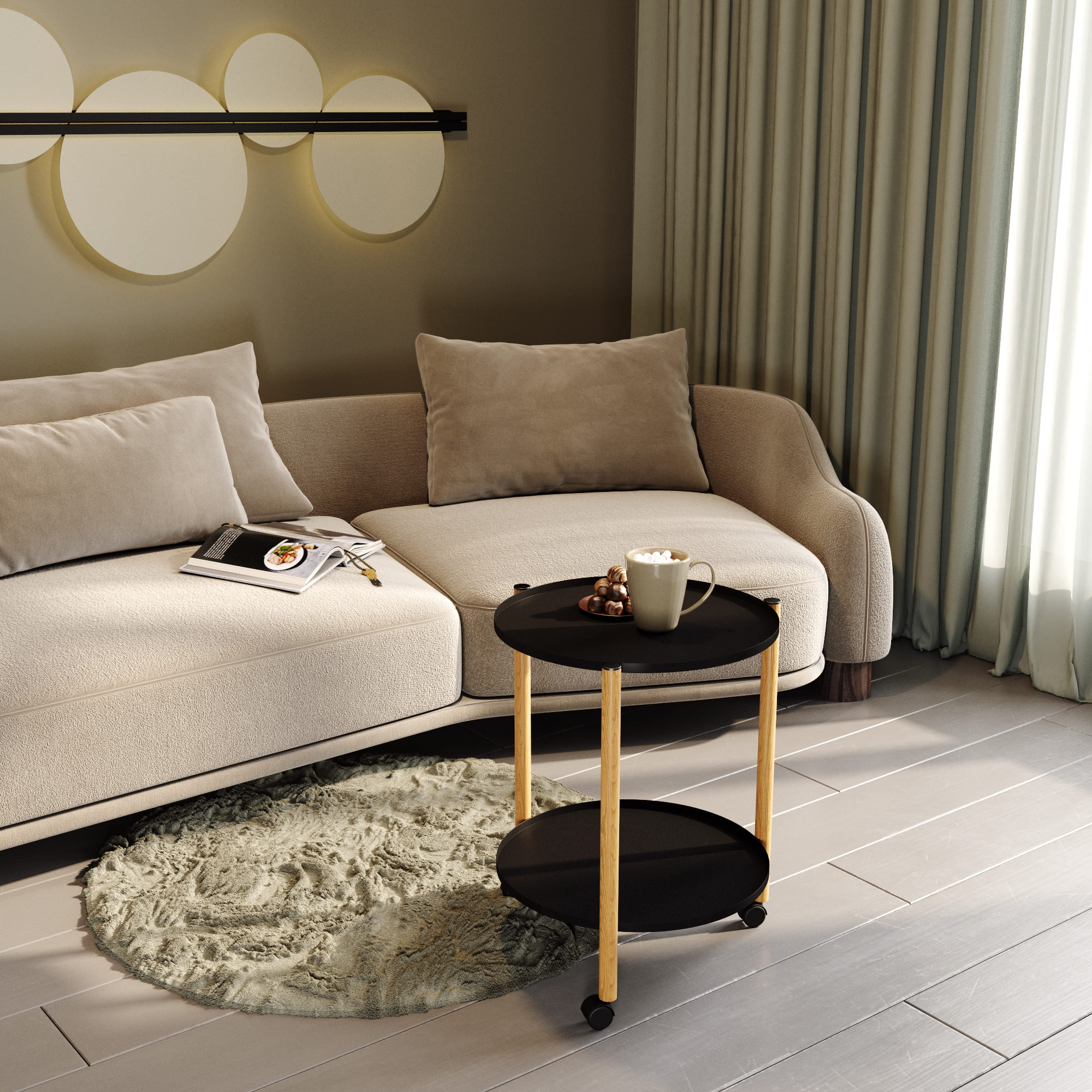 Двухъярусный сервировочный столик на колесах— это практичное дизайнерское решение для интерьера гостиной, спальни, кухни или кабинета. Благодаря своей компактности и функциональности, приставной столик станет незаменимым помощником в организации пространства.