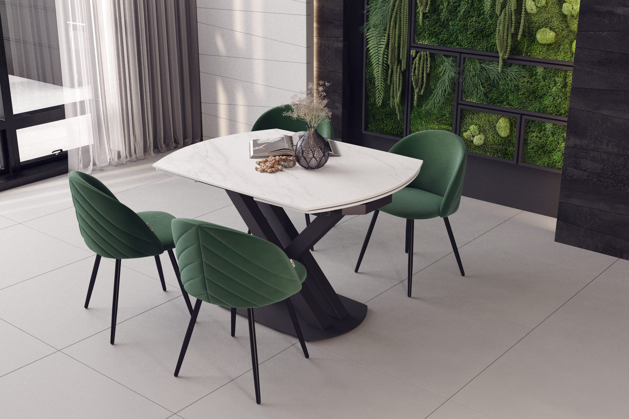 Раскладной обеденный стол SHT-T75 из спеченного камня на металлическом подстолье - это идеальное сочетание красоты и практичности. Этот стол прекрасно дополнит интерьер гостиной, столовой, рабочего кабинета. Рисунок и текстура натурального камня столешницы придает готовому столу дорогой и нарядный вид.