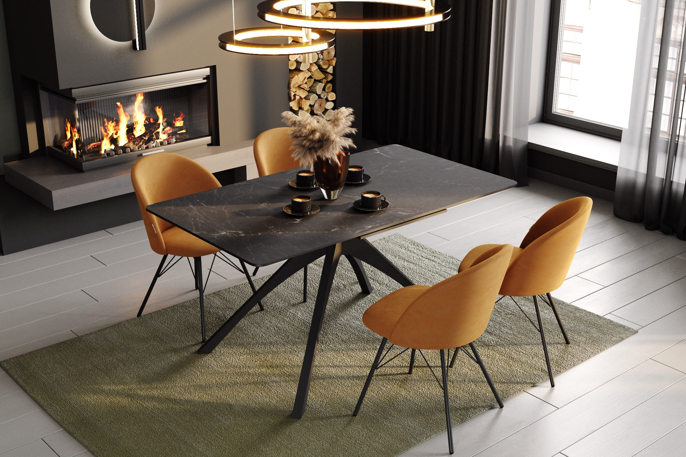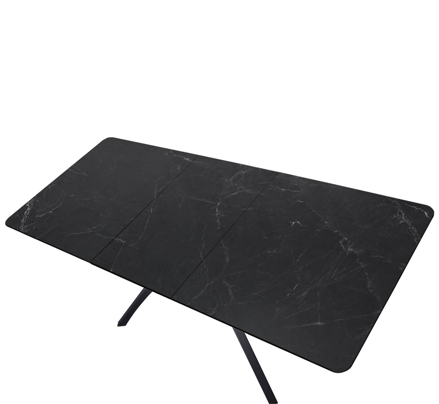 Раскладной обеденный стол SHT-T76 из спеченного камня на металлическом подстолье - это идеальное сочетание красоты и практичности. Этот стол прекрасно дополнит интерьер гостиной, столовой, рабочего кабинета. Рисунок и текстура натурального камня столешницы придает готовому столу дорогой и нарядный вид.