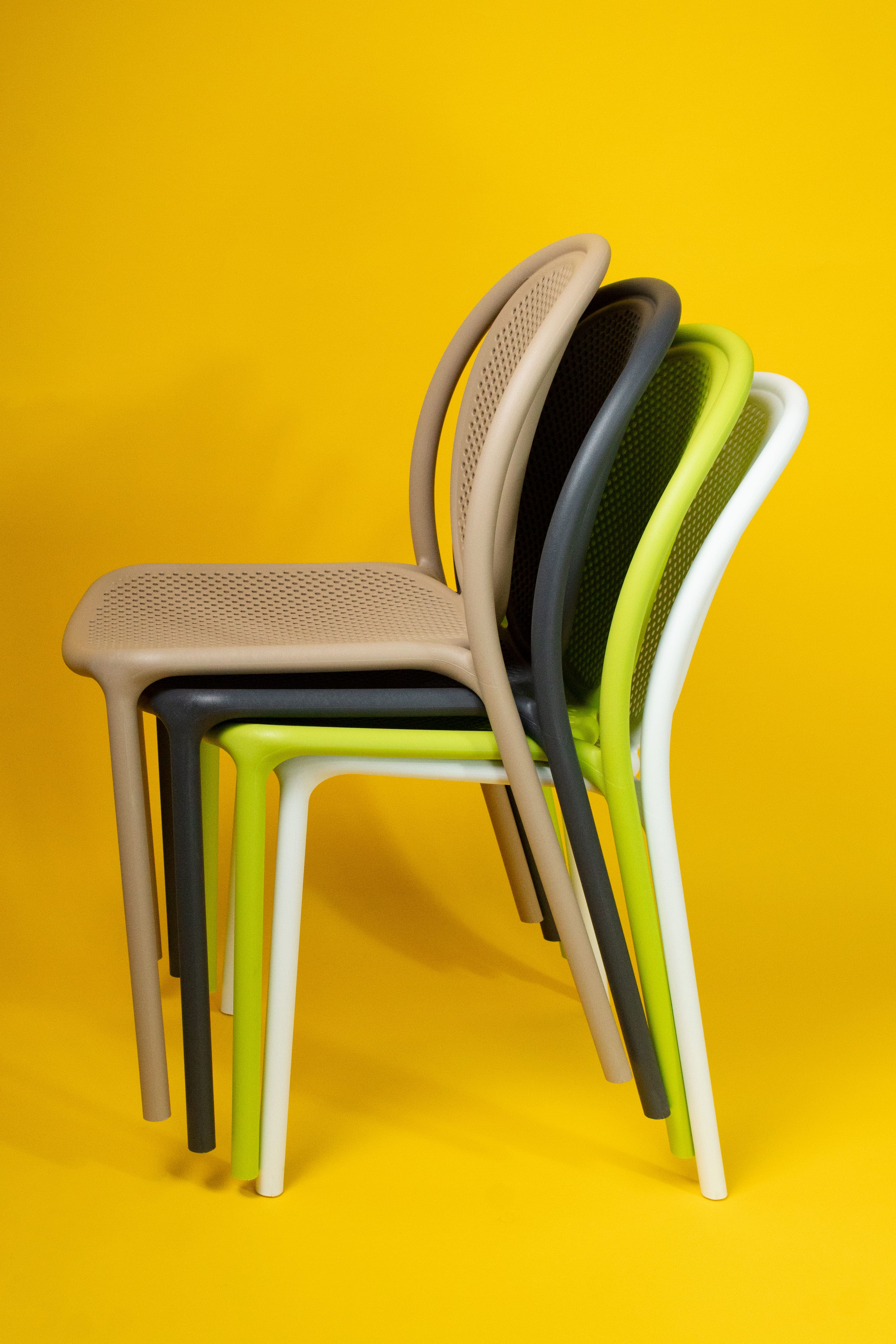Стул выполнен из полипропилена с армирующими добавками, благодаря которым повышается жесткость и надежность. Изделие устойчиво к ударным воздействиям, негативным воздействиям окружающей среды и появлению царапин.