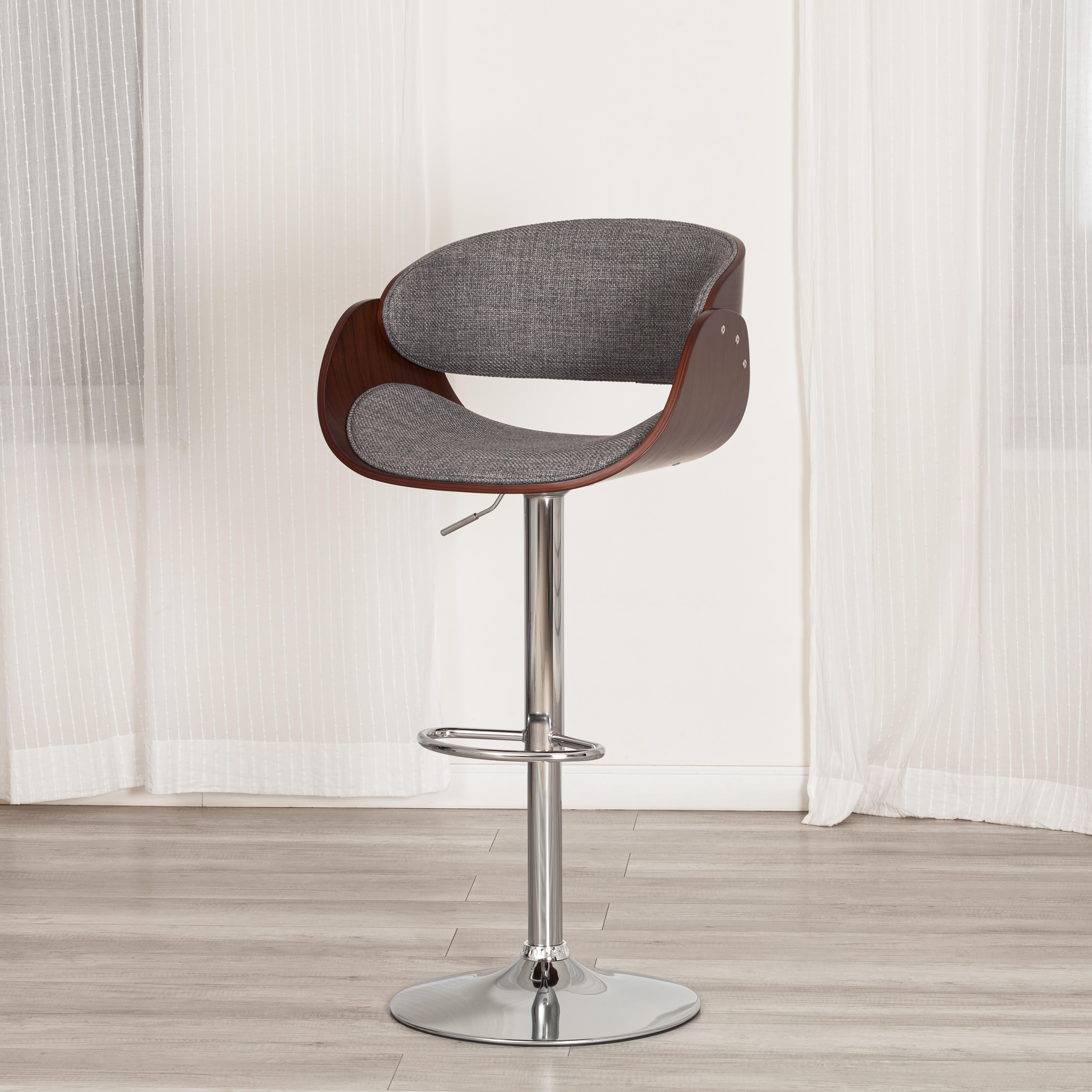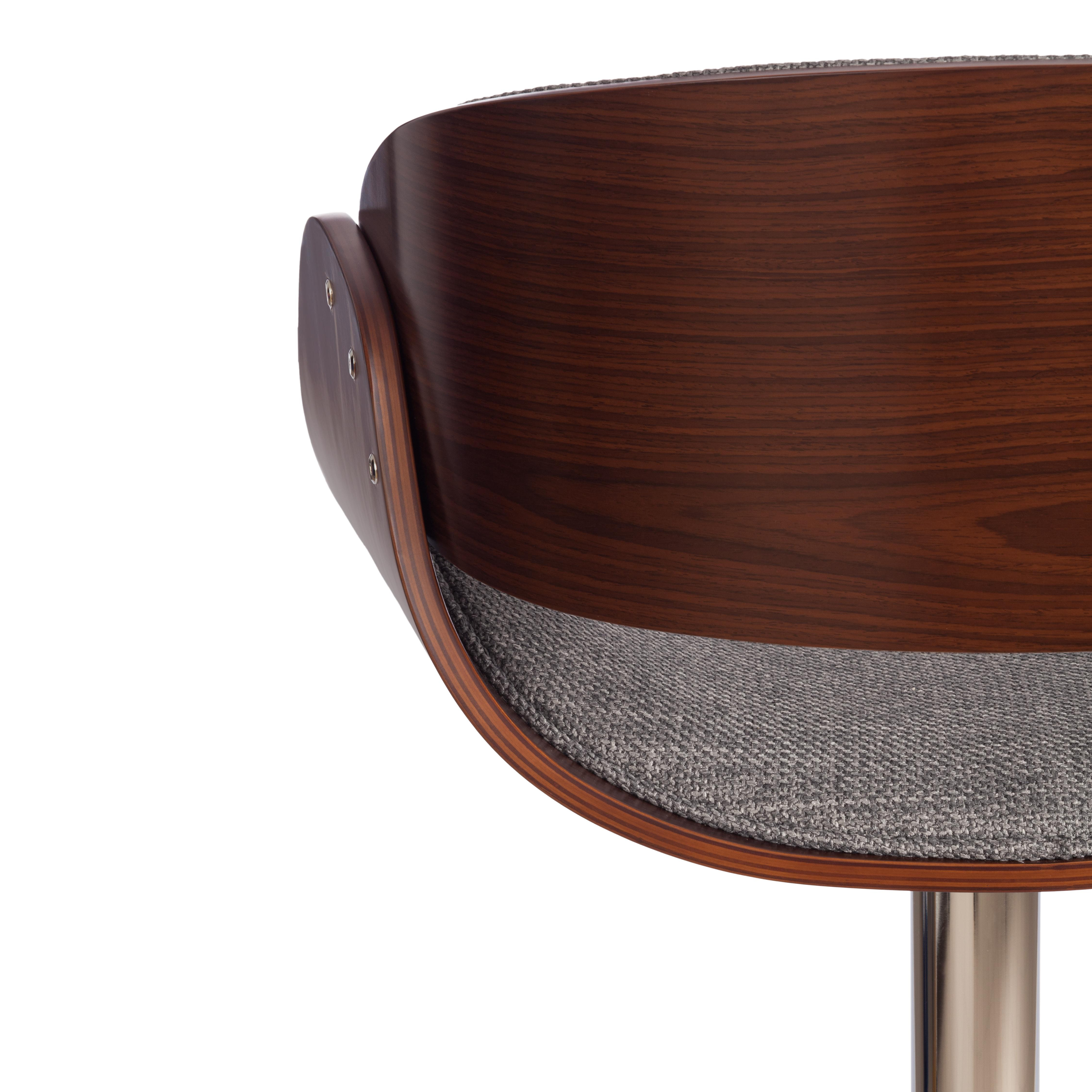 - Отделка: металл/дерево/ткань, 59х51х93-114 см, высота сиденья 62-83 см, серый/орех/хром, Aimcasa 28