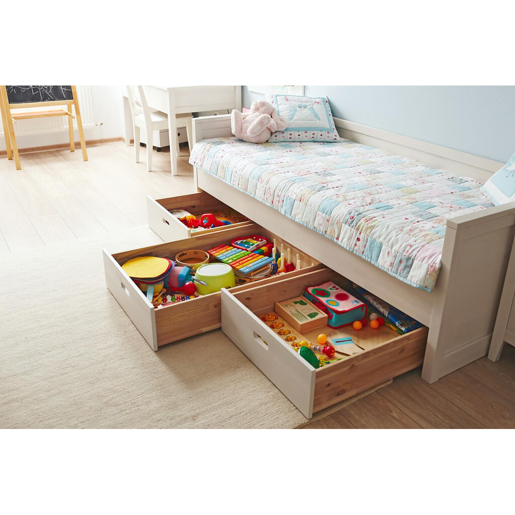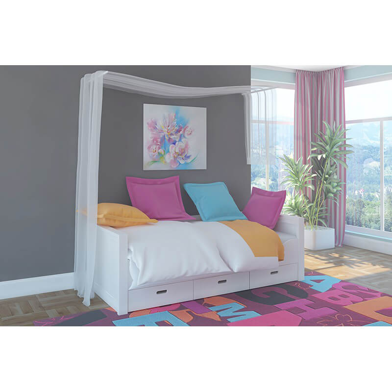 Поверхности кровати обработаны только водными лаками и красками, что делает её экологически чистой и безопасной для здоровья. Благодаря этому она не выделяет вредных веществ и не вызывает аллергии.