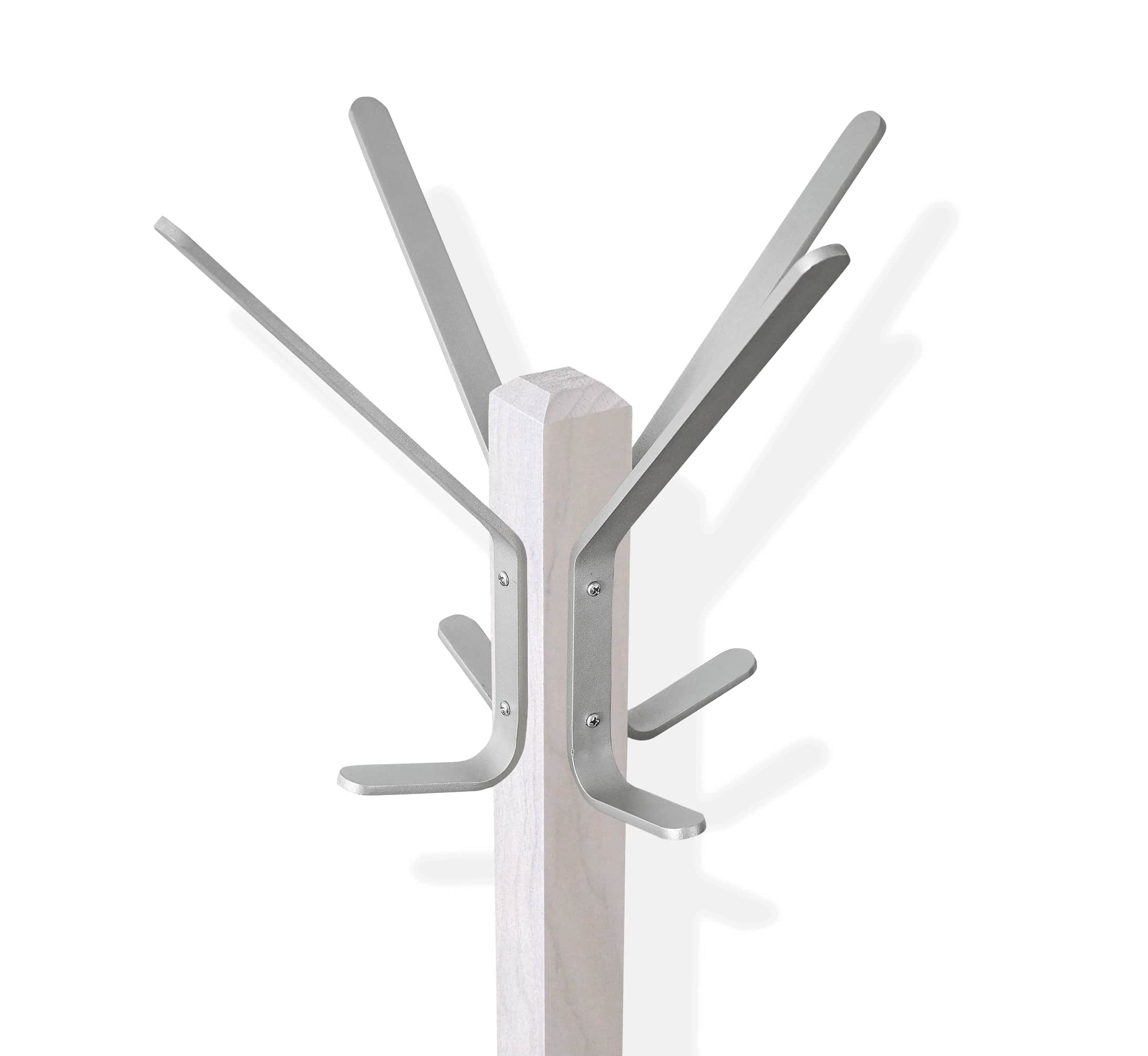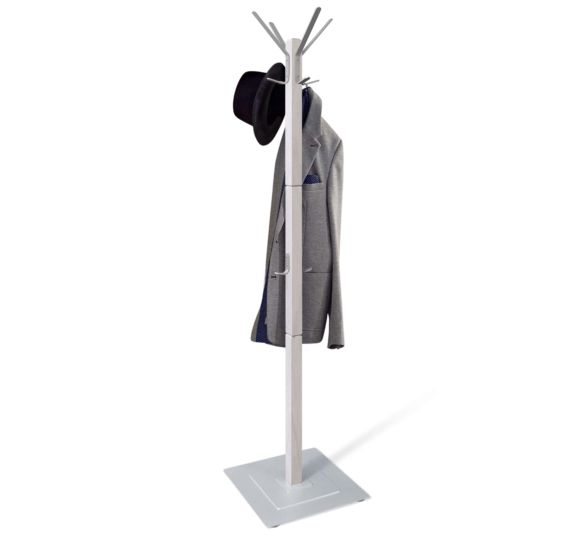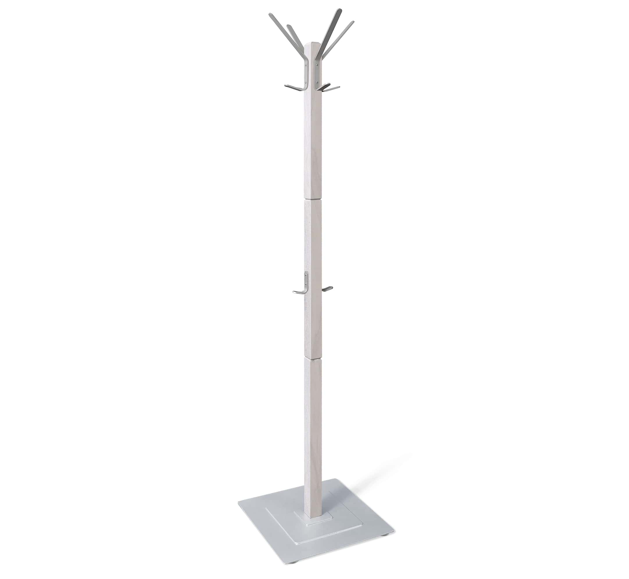 Стойка выполнена из массива древесины, брус толщиной 46х46 мм.; крючки - из металла.